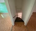 • empty room with a hallway, white tile flooring, a white cabinet, and a potted plant