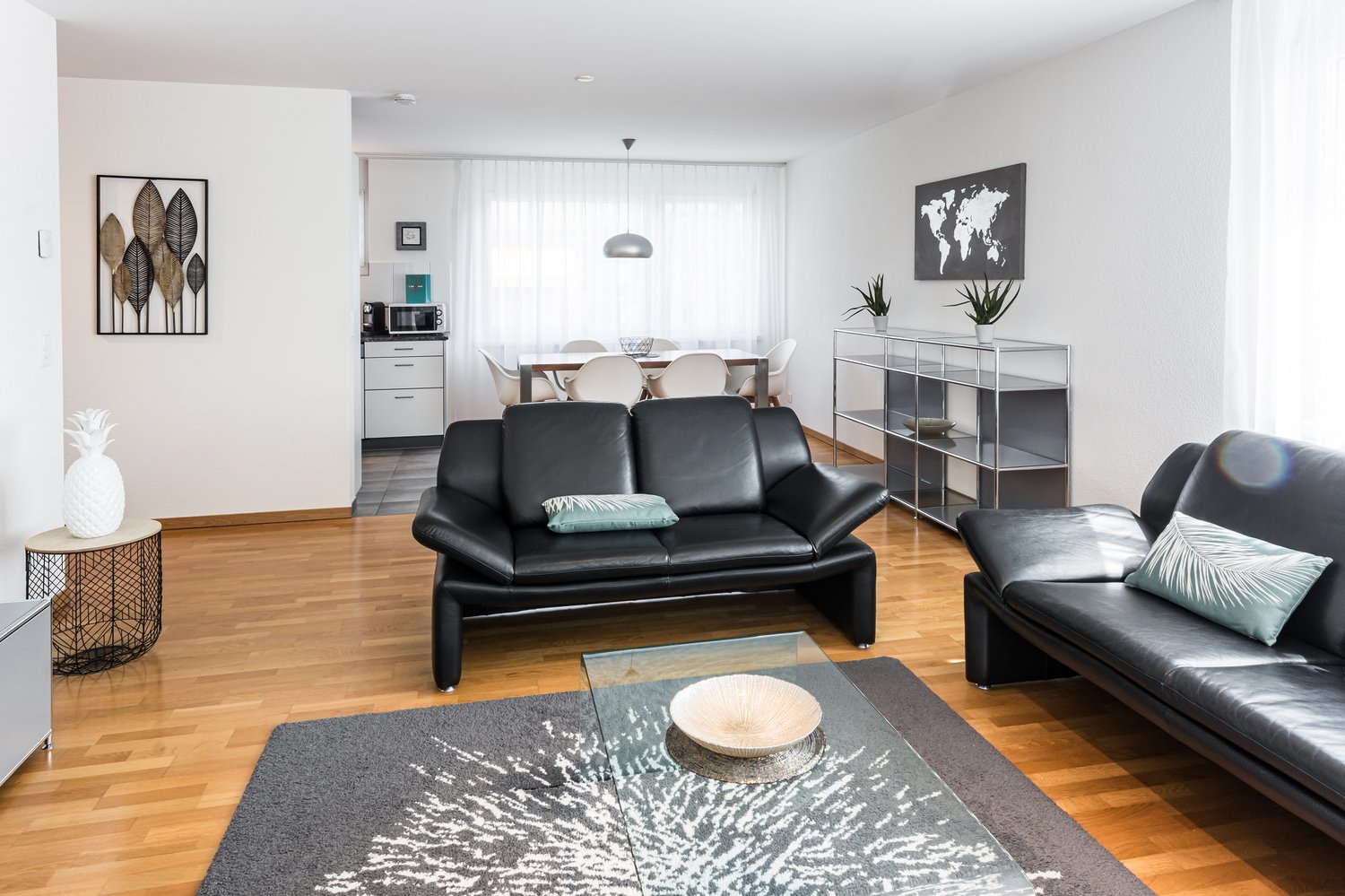 Wohnung & AusstattungDas geräumige und helle 170m2 Apartment ist modern eingerichtet und bietet alles, was Sie sich für ein angenehmes Wohngefühl wünschen. Im Hauptschlafzimmer steht ein komfortables Doppelbett, in den weiteren Schlafzimmern befinden sich ebenso komfortable Einzelbetten. Im Wohnzimmer entspannen Sie sich auf dem bequemen Sofa mit Couchtisch vor dem Flat Screen TV. Am Esstisch finden Sie Platz für bis zu sechs Personen. Auch der grosse Balkon mit Esstisch lädt ein zu gemütlichen Stunden mit Freunden und Familie. Zusätzlichen Stauraum bietet ein grosszügiges Reduit.Die offene Küche verfügt über einen Glaskeramikkochherd, einen integrierten Backofen mit Grillfunktion und einen Kühlschrank inkl. Gefrierfach. Sie ist so funktional wie hübsch und hält alles bereit, was Sie zum Kochen benötigen: Töpfe, Pfannen, qualitativ hochwertiges Geschirr, Besteck ...Die Wohnung ist liebevoll ausgestattet mit: Bettwäsche, Bügelbrett, Bügeleisen, Geschirrspüler, Mikrowelle, Nespresso-Kaffeemaschine, Toaster, Wasserkocher, Handtüchern, Haartrockner.Die separaten, modern gefliesten Badezimmer – mit Badewanne oder Dusche– haben eine angenehme Grösse und sind mit Hygieneartikeln perfekt ausgestattet. Im Apartment stehen Ihnen Ihre eigene Waschmaschine und ein Trockner (Tumbler) zur Verfügung.Im Mietpreis inbegriffen:· 2 set Bett- und Frottierwäsche· Welcome Package· Unlimitiertes high-speed Internet· Alle Nebenkosten (Wasser, Elektrizität, Heizung)· 27 Notfall Hotline· Technischer Support für TV & Internet· Housekeeping Services· Waschmaschine/Trockner im Apartment · HaustierfreundlichAm Ende der Mietdauer fällt eine Endreinigungspauschale von CHF 300.00 incl. MWST an.Der angegebene Preis ist gültig ab einer Mietdauer von 6 Monaten. Für kürzere Mietzeiten kontaktieren Sie uns bitte für ein Angebot.Kontaktieren Sie uns bezüglich unseren optionalen Reinigungs- und Wäscheservices um Ihren Alltag zu erleichtern.**************************************************Accommodation & FacilitiesThe spacious and bright 170sqm apartment is furnished in a modern style and provides everything to to guarantee a pleasant living atmosphere for you. It is furnished with a comfy double bed in the master bedroom and single beds in the second and third bedroom. Spend some relaxing hours in the living area with a comfortable sofa, coffee table and a flat screen television. The dining table conveniently seats up to six people. The spacious balcony with a table invites you to enjoy a cosy get-together with family and friends. An additional storeroom offers space to stow your belongings.The open-plan kitchen is fully equipped with a ceramic glass hob, an integrated oven with grill function and a refrigerator incl. a freezer compartment. Kitchen supplies such as pots, pans, high-quality crockery, cutlery etc. are provided – cooking and dining has never been more pleasant.The accommodation is beautifully appointed with: balcony furniture, bed linen, an ironing board, a dishwasher, a microwave, a Nespresso coffee machine, a toaster, a kettle, towels, a hairdryerThe separate and modernly tiled bathrooms – with a bathtub or a shower– have a convenient size and are perfectly equipped with toiletries. A washing machine as well as a dryer are available in the apartment for free use.Rental price includes:· 2 sets of linens & towels· Welcome Package· Unlimited high-speed Internet· All utilities (water, power, heating)· 27 Emergency Hotline· Technical support for TV & Internet· Responsive Housekeeping Services· In unit laundry · Pet friendlyOne time end cleaning fee CHF 300.00 incl. VATThe indicated price is valid for stays from 6 months. For shorter stays please contact us for a quote.Ask about our additional cleaning and laundry service to make you life easier.«Die Book a home AG bearbeitet Personendaten von Bewerber:innen gemäss Datenschutzerklärung der Book a home AG, welche «Die Book a home AG bearbeitet Personendaten von Bewerber:innen gemäss Datenschutzerklärung der Book a home AG, welche auf www.bookahome.ch abgerufen werden kann.»