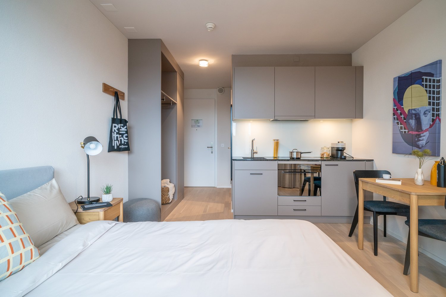 Hochwertig möblierte Apartments im Lisbon Style mit durchdachten Grundrissen und Balkon erleben Sie modernes Wohnen in Muttenz, nahe Basel, mit optimaler Anbindung an den öffentlichen Verkehr, Einkaufsmöglichkeiten und Freizeitangebote. High-quality furnished apartments in Lisbon style with well-thought-out layouts and balconies experience modern living in Muttenz, near Basel, with excellent connections to public transport, shopping, and leisure activities. Erleben Sie Wohnen im exklusiven Lisbon Style - voll ausgestattet, hochwertig möbliert und komplett ready to live. Perfekte Sauberkeit und eine neuwertige Übergabe sind garantiert! Die Anmietung ist unkompliziert und schnell - ganz ohne den Aufwand herkömmlicher Mietprozesse. Unser engagiertes Team sorgt für eine persönliche und exzellente Betreuung. Der angezeigte Preis umfasst sämtliche Kosten - keine versteckten Gebühren, volle Transparenz. Ausstattung: • Neubauwohnung oder umfassend renoviert • Komplett stilvoll möbliert • Voll ausgestattete Küche inkl. Geschirr und Besteck, Bettwäsche und Handtücher • Fernseher, Internet, Sonos-Lautsprecher • Hochwertiges Boxspringbett • Waschmaschine und Trockner • Nebenkosten inklusive • Einstellhallenplatz zu CHF 150.00 pro Monat elron club Services: Buchen Sie Ihre regelmässige Wohnungsreinigung und weitere attraktive Services bei uns im elron club. Profitieren Sie von spannenden Deals und Partnerangeboten. Co-Working Lounges: elron club Bewohner dürfen unsere Co-Working Lounges an den folgenden Standorten (weitere folgen) kostenlos nutzen: • Basel-Tower Münchenstein • Luzern-Tribschen In unseren Co-Working Lounges erwarten Sie zahlreiche Annehmlichkeiten wie professionelle Arbeitsplätze, Kaffeemaschinen, Druckerstationen und vieles mehr. Vertrags- und Mietdauer: • Die Mindestmietdauer beträgt 3 Monate, wobei der Vertrag unbefristet abgeschlossen wird. • Der angegebene Preis gilt für eine Mindestmietdauer von 14 Monaten. Bei kürzeren Vertragslaufzeiten erhöht sich der Mietpreis. Bitte beachten Sie Folgendes: • Eine Monatsmiete Kaution ist vor Mietbeginn zu hinterlegen. • Die Endreinigung ist grundsätzlich im Preis inbegriffen. • In der Miete sind Heiz-, Strom- und Nebenkosten enthalten. • Nach Abschluss der Buchung erhalten Sie den Mietvertrag zur Unterzeichnung und für Ihre Unterlagen. • Zahlungen erfolgen per Banküberweisung oder Kreditkarte. Mit elron club mieten Sie einfach, unkompliziert und schnell Ihr neues Apartment. Wir benötigen keine umfangreichen Unterlagen und wochenlange Bewerbungsprüfungen in den meisten Fällen reicht eine Passkopie! Bilder: Die Bilder stammen von der tatsächlichen Wohnung oder einer Wohnung in derselben Liegenschaft. Bei neuen Standorten kann es sich um Platzhalterbilder von anderen Standorten oder Visualisierungen handeln. Haben Sie noch Fragen? Gerne beraten wir Sie persönlich und bieten Ihnen einen unverbindlichen Besichtigungstermin an. Hinterlassen Sie uns Ihre Kontaktdaten im Kontaktformular. Wir freuen uns auf Sie! ------------------------------------------------------------------------------------------------------ Experience living in exclusive Lisbon style fully equipped, stylishly furnished, and completely ready to move in. Spotless cleanliness and a like-new condition upon handover are guaranteed! Renting is quick and hassle-free no complications of traditional rental processes. Our dedicated team ensures personal and outstanding service. The listed price includes all costs no hidden fees, full transparency. Features: • Newly built apartment or comprehensively renovated • Fully furnished with style • Fully equipped kitchen, including dishes, cutlery, bed linen, and towels • TV, internet, Sonos speakers • Premium box spring bed • Washing machine and dryer • Utilities included • Indoor Parking available at CHF 150.00 per month elron club Services: Book your regular apartment cleaning and other attractive services with us at elron club. Benefit from exciting deals and partner offers. Co-Working Lounges: elron club residents can use our co-working lounges at the following locations (more to follow) free of charge: • Basel-Tower Münchenstein • Lucerne-Tribschen In our co-working lounges, you'll find numerous amenities such as professional workstations, coffee machines, printer stations, and much more. Contract and rental duration: • The minimum rental period is 3 months, with the contract being open-ended. • The displayed price applies for a minimum rental period of 14 months. For shorter contract periods, the rental price increases. Please note the following: • A security deposit of one month's rent must be made before the start of the rental period. • The final cleaning is included in the price. • Heating, electricity, and utility costs are included in the rent. • Once your booking is confirmed, you will receive the rental agreement for signing and your records. • Payments can be made via bank transfer or credit card. With elron club, renting your new apartment is simple, fast, and hassle-free. We do not require extensive documents or long application checks in most cases, a copy of your passport is sufficient! Images: The images show the actual apartment or a unit in the same building. For new projects, placeholder images from other locations or visualizations may be used. Do you have any questions? We are happy to advise you personally and offer you a non-binding viewing appointment. Please leave your contact details in the contact form. We look forward to hearing from you!
