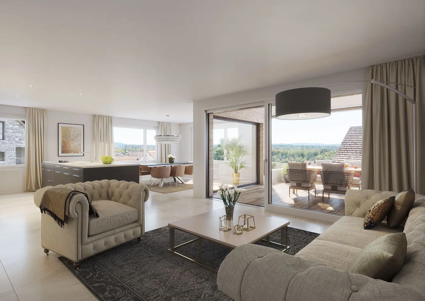 Diese aussergewöhnliche 3.5 Zimmer-Dachwohnung mit Umbau-/Erweiterungspotenzial auf z.B. 5.5 Zimmer, präsentiert sich mit einer beeindruckenden Wohnfläche von rund 290 m², vereint einerseits Grosszügigkeit, Eleganz und anderseits Komfort auf höchstem Niveau ... da werden Sie mit Stil und Qualität residieren. Bereits beim Betreten überzeugt der direkte Liftzugang, welcher Sie barrierefrei von der Einstellhalle mit Doppelgarage bis in Ihr neues Zuhause führt.Der lichtdurchflutete Wohn- und Essbereich beeindruckt durch die hohen, sanft geschwungenen Gewölbedecken und das elegante Cheminée, das eine warme, wohnlich angenehme Atmosphäre schafft. Die grosszügige Fensterfront öffnet den Blick, in allen Himmelsrichtungen, über die Dächer von Gränichen hinaus in die grüne Hügellandschaft und lässt zu jeder Tageszeit reichlich Sonnenlicht hereinströmen.Vier Terrassen teilweise überdacht und mit hohen Decken versehen, bieten vielseitige Aussenbereiche: mal sonnig, mal schattig, stets mit herrlicher Weitsicht.Die Schlafzimmer sind jeweils mit exklusiven en-Suite-Bädern ausgestattet. Während ein Zimmer mit DU /WC und das andere mit einer Ankleide und einer luxuriöse Whirlpool-Badewanne. Jedes Zimmer verfügt über einen Zugang zu den Balkonen und reichlich Tageslicht. Die Wohnung verfügt zudem über ein Gäste-WC und ein Reduit mit Waschturm.Aktuell präsentiert sich die Wohnung mit einem riesigen, offenen Wohn-Ess-Arbeitsbereich. Eine individuelle Raumtrennung / Gestaltung ist jedoch problemlos und kostengünstig möglich: Zum Beispiel lassen sich daraus zwei zusätzlich abgeschlossene, geräumige Zimmer formen, sodass z.B. eine 5.5 Zimmer-Wohnung oder sogar mehr entsteht. Die zentrale Lage ermöglicht kurze Wege: In wenigen Schritten erreichen Sie Einkaufsmöglichkeiten, Apotheke, Restaurants, Post, Gemeindezentrum sowie Bahnverbindungen.Diese Dachwohnung verbindet luxuriösen Ausbaustandard mit viel Raum für persönliche Wohnideen ein einmaliges Angebot für Menschen, die das Besondere suchen.Die Doppelgarage ist im Preis von 1'490'000 inklusive. Es kann noch ein Hobbyraum dazu erworben werden.EINLADUNG: Die Objekt-Webseite weckt Ihr Interesse an dieser grossartigen Liegenschaft, die Ihr neues Zuhause werden könnte? Dann sind Sie als solventer und geschätzter Kaufinteressen herzlich eingeladen das Exposé zu bestellen Ihr Makler Nicolas Götschi freut sich auf Ihre geschätzte Anfrage.