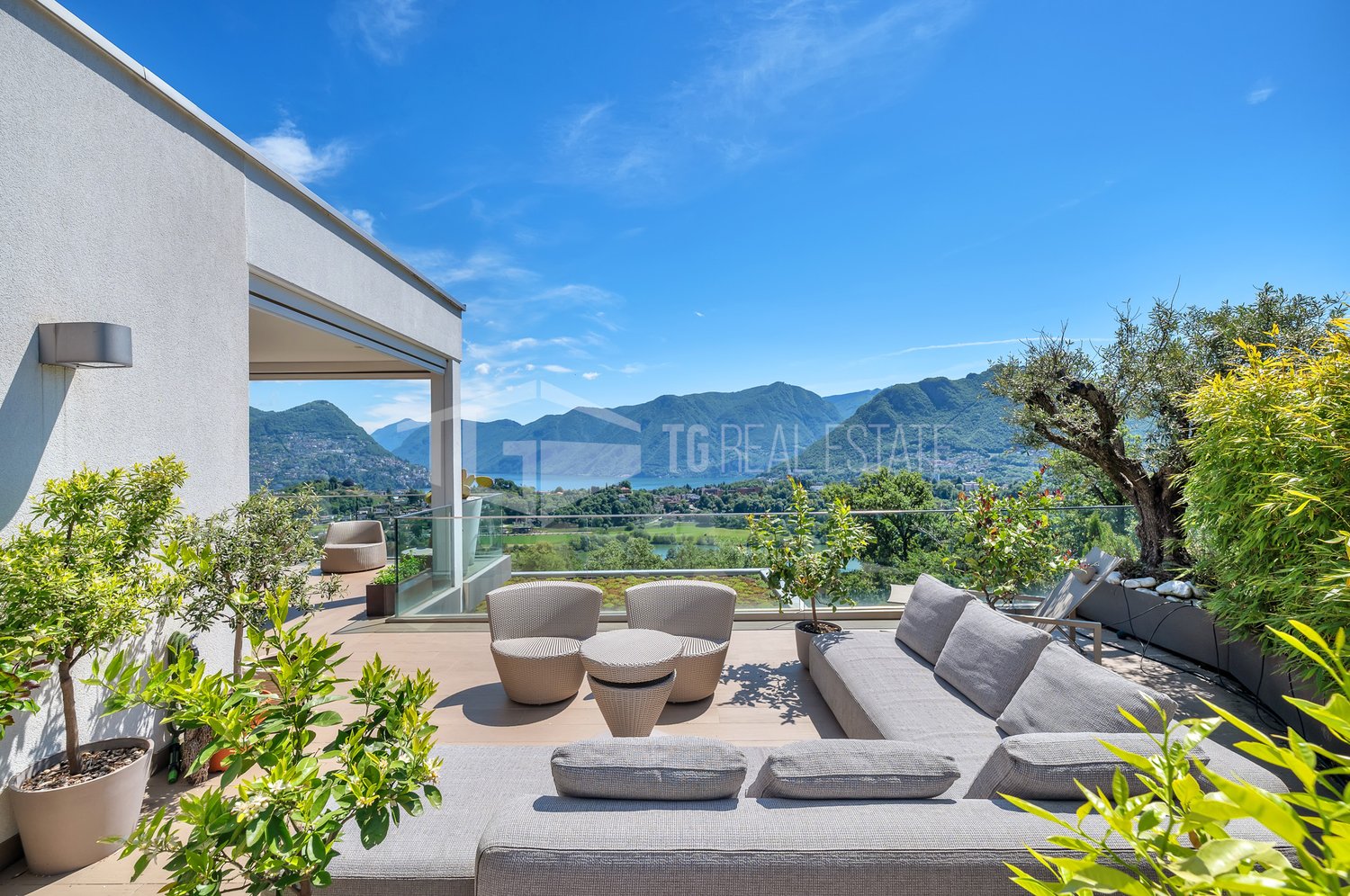 Situato a Lugano, in posizione strategica e comoda a tutti i principali servizi, questo attico offre una soluzione abitativa elegante, a pochi minuti dal centro città raggiungibile sia a piedi sia con i mezzi pubblici.Posto al sesto e ultimo piano, l'appartamento gode di una gradevole vista aperta e di un'ottima luminosità. Completamente ristrutturato nel 2021, si distingue per la cura dei dettagli e la scelta di materiali di qualità, che contribuiscono a creare ambienti accoglienti e armoniosi.L'ingresso, dotato di armadi a muro su misura, conduce a un'ampia zona giorno. Il soggiorno, luminoso e ben proporzionato, si apre su due balconi che ampliano la percezione dello spazio e permettono di godere di una piacevole vista sulla città. La cucina a vista, moderna e funzionale, si integra perfettamente con l'ambiente, creando un contesto ideale per la vita di tutti i giorni. La zona notte comprende una camera padronale con bagno en-suite, due ulteriori camere da letto, un bagno finestrato e un bagno di servizio con colonna lava-asciuga. Ogni ambiente è dotato di aria condizionata.Completano la proprietà una cantina e un solaio. Un box auto e un posto esterno sono disponibili per CHF 150'000, mentre l'arredamento, curato con gusto e perfettamente in sintonia con lo stile dell'abitazione, può essere acquistato per CHF 100'000.Dieses Penthouse befindet sich in Lugano in einer strategisch günstigen Lage, nur wenige Minuten vom Stadtzentrum entfernt, das bequem zu Fuss oder mit öffentlichen Verkehrsmitteln erreichbar ist. Es bietet eine elegante Wohnlösung in unmittelbarer Nähe zu allen wichtigen Dienstleistungen.Die Wohnung liegt im sechsten und obersten Stockwerk und überzeugt durch eine angenehme, offene Aussicht sowie durch eine hervorragende Helligkeit. Sie wurde 2021 vollständig renoviert und zeichnet sich durch sorgfältige Details und hochwertige Materialien aus, die eine einladende und harmonische Atmosphäre schaffen.Der Eingangsbereich mit massgefertigten Einbauschränken führt in einen grosszügigen Wohnraum. Das helle, gut proportionierte Wohnzimmer öffnet sich zu zwei Balkonen, die das Raumgefühl erweitern und einen schönen Blick auf die Stadt bieten. Die moderne, offene Küche fügt sich harmonisch in den Raum ein und schafft einen idealen Ort für den Alltag.Der Schlafbereich umfasst ein Hauptschlafzimmer mit eigenem Bad, zwei weitere Schlafzimmer, ein Badezimmer mit Fenster sowie ein Gäste-WC mit Wasch-Trockensäule. Alle Räume sind mit Klimaanlage ausgestattet.Ein Keller und ein Dachboden vervollständigen dieses attraktive Angebot. Eine Garagenbox und ein Aussenparkplatz sind für CHF 150'000 erhältlich, während die geschmackvoll ausgewählte Einrichtung, die perfekt zum Stil der Wohnung passt, für CHF 100'000 erworben werden kann.Located in Lugano, in a strategic position close to all main amenities, this penthouse offers an elegant living solution just a few minutes from the city centre, easily accessible on foot or by public transport.Situated on the sixth and top floor, the apartment enjoys a pleasant open view and excellent natural light. Fully renovated in 2021, it stands out for its attention to detail and the use of high-quality materials that create a warm and harmonious atmosphere.The entrance hall, equipped with custom-made built-in wardrobes, opens onto a spacious living area. The bright and well-proportioned living room extends onto two balconies that enhance the sense of space and offer a charming view over the city. The modern open-plan kitchen blends seamlessly into the environment, creating an ideal setting for everyday living.The sleeping area includes a master bedroom with en-suite bathroom, two additional bedrooms, a bathroom with window, and a guest bathroom with laundry column. Every room is equipped with air conditioning.A cellar and an attic complete the property. A garage box and an outdoor parking space are available for...