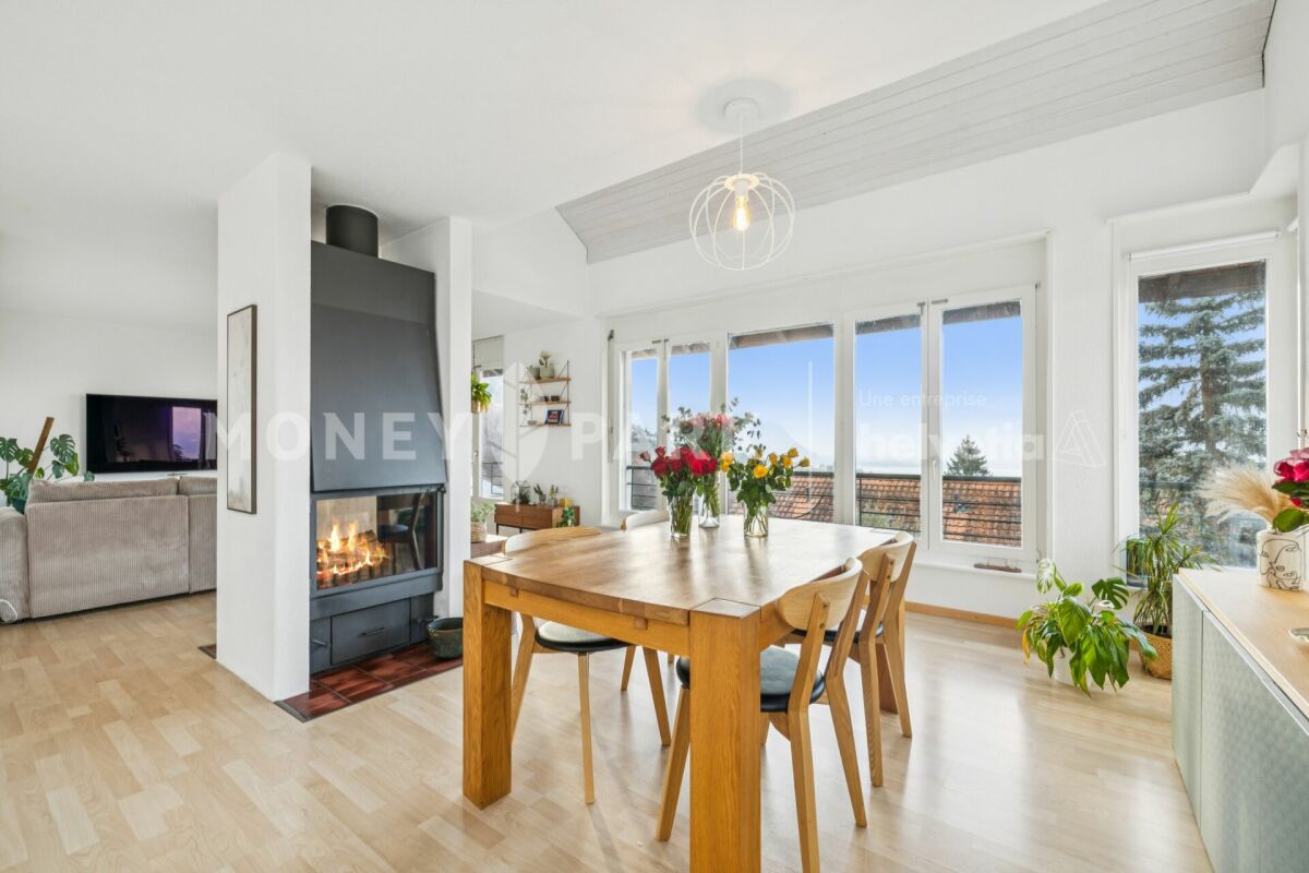 Villa jumelle 9.5 pièces à Rennaz - confort, espace et charme Idéalement située dans un quartier résidentiel de Rennaz, cette spacieuse villa jumelle de 9.5 pièces combine lumière, espace et confort, pour offrir un cadre de vie agréable à toute la famille. Avec plus de 175 m², elle répond parfaitement aux besoins d'une vie moderne tout en conservant une atmosphère chaleureuse et conviviale.En entrant, vous êtes accueilli par un hall d'entrée, qui donne immédiatement le ton de cette maison à l'ambiance accueillante. Le vaste séjour, prolongé par un coin à manger, est un espace de vie idéal, baigné de lumière naturelle et doté d'un poêle à bois qui apporte chaleur et convivialité durant les soirées d'hiver. La cuisine ouverte, fonctionnelle, s'intègre à l'espace de vie et favorise les moments de partage en famille ou entre amis.Le rez-de-chaussée comprend également une chambre, parfaite pour un bureau, une chambre d'amis ou un espace polyvalent, ainsi qu'un vestiaire, un local technique et un WC visiteurs, pensés pour allier confort et praticité.À l'étage, l'espace nuit se compose de trois grandes chambres mansardées au charme unique, ainsi qu'une salle de bains et une salle de douche, offrant à chacun intimité et confort.À l'extérieur, la villa dispose d'une terrasse de 26 m2 et d'un grand jardin (selon plan annexe, zone en jaune), idéal pour les enfants ou pour vos moments de détente en plein air. Un abri de jardin / cave complète ce bien, offrant un espace de rangement supplémentaire.La maison bénéficie également de 2 à 3 places de parc extérieures.Située à quelques pas de l'Hôpital Riviera-Chablais, proche des commerces, des écoles et des axes principaux, cette villa réunit confort et praticité. Son architecture fonctionnelle, ses espaces généreux et son cadre de vie verdoyant en font une opportunité rare sur le marché, parfaite pour ceux qui recherchent une maison familiale prête à accueillir leur quotidien. Disposition des pièces Rez-de-chaussée • Hall d'entrée de 14.45 m2 • Séjour / coin à manger avec poêle à bois • Cuisine ouverte • Chambre de 10.96 m2 • WC visiteurs • Réduit / vestiaire • Local technique Etage • Hall d'étage • 2 chambres de 23.33 m2 • 1 chambre de 19.48 m2 • Salle de bain • Salle de douche Extérieur • Terrasse de 26 m2 • Grand jardin • abri de jardin • 2 à 3 places de parc extérieures
