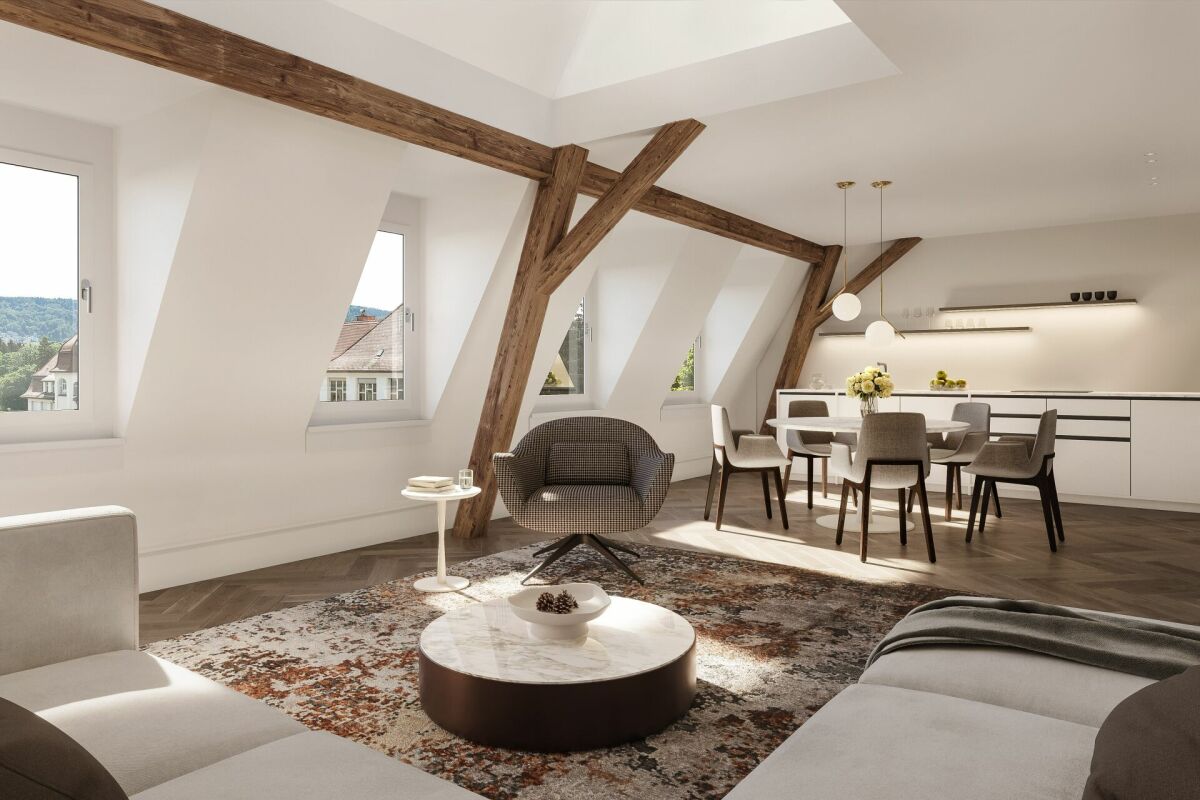 Diese kompakte Wohnung im 1. und 2. Obergeschoss eines gepflegten Mehrfamilienhauses aus dem Jahr 1995 vereint urbanes Wohnen mit einer ruhigen, grünen Umgebung. Sie ist ideal für alle, die ein pflegeleichtes pied-à-terre im Zentrum der Stadt suchen, ohne auf Erholung und Natur zu verzichten. Zahlreiche Grünflächen und kleine Wege zwischen den Häusern schaffen eine freundliche, entspannte Atmosphäre. Der beliebte Uetliberg ist nur 15 Gehminuten entfernt. Die Wohnung präsentiert sich in sehr gutem und einladenden Zustand. Im Schlafzimmer sorgt ein hochwertiger Eichenparkettboden aus dem Jahr 2019 für Wärme und Behaglichkeit. Das angrenzende en-suite Badezimmer, ebenfalls 2019 vollständig erneuert, begeistert mit modernem Design und Naturstein in sanften Sandtönen, ein Ort zum Wohlfühlen und Entspannen. Die Küche überzeugt mit viel Stauraum, einer edlen Granitabdeckung sowie einem neuen Kühlschrank. Sie ist offen gestaltet und führt direkt in den Essbereich mit Zugang zum sonnigen Balkon in Südostlage, perfekt für das Frühstück im Freien. Auf der gegenüberliegenden Seite befindet sich das Wohnzimmer, das bei Bedarf abgetrennt werden kann. Auch hier lädt ein Balkon zum Verweilen ein, mit Blick Richtung Nordwest und Sonne bis in die Abendstunden. Zwei überdachte Balkone, eine ruhige Wohnlage und viel Licht machen diese Wohnung zu einem charmanten Rückzugsort mitten im aufstrebenden Trendquartier Wiedikon. Die Liegenschaft ist zudem bestens unterhalten: so wurde in den letzten Jahren unter anderem die Fassade erneuert. Abgerundet wird das attraktive Angebot durch einen abgeschlossenen Kellerraum sowie eine grosszügige Garagenbox in der Tiefgarage. Zum Haus gehören ausserdem vier grosszügige Besucherparkplätze. Die Lage ist hervorragend: nur vier Gehminuten entfernt befindet sich die Haltestelle Friesenberg der S10, von wo aus Sie in nur zehn Minuten den Zürcher Hauptbahnhof erreichen. Für den täglichen Einkauf bieten sich der Wiediker Markt und der Friesenbergerplatz bestens an. Hier wohnen Sie ruhig, grün und doch mitten im urbanen Leben.Die Liegenschaft eignet sich optimal für Paare und Individualisten, die das Stadtleben schätzen, sich gleichermassen jedoch an einen Ort der Ruhe und Konvivialität zurückziehen möchten. Zürich liegt im Herzen Europas und ist das wichtigste wirtschaftliche, kulturelle und gesellschaftliche Zentrum der Schweiz. Das Quartier in Wiedikon ist mit seiner bevorzugten Lage und der top ausgebauten Infrastruktur eine der beliebtesten Wohnlagen in Zürich. Die trendigen Restaurants, Bars und Cafés des Kreis 4 und der Binz befinden sich nur wenige Gehminuten entfernt. Die Nähe sowohl zum Uetliberg als auch zum Stadtzentrum bietet einen optimalen Ausgleich zwischen Ruhe, Natur und aktivem Stadtleben. In 4 Gehminuten befindet sich die S-Bahn Haltestelle -Friesenberg- (S-10), mit der man in 10 Min. an den Zürcher Hauptbahnhof gelangt wie auch die Buslinie 12, die über den Goldbrunnenplatz via Helvetiaplatz bis nach Neuaffoltern fährt. Kindergarten, Schulen (Primar-, Sekundar- und Gymnasium) sowie Einkaufsmöglichkeiten sind in kurzen Distanzen zu erreichen. Der Stadtteil bietet ausserdem Abwechslung für Sportbegeisterte und Erholungssuchende. So zum Beispiel den Vitaparcours, die Reitanlagen, Tennisplätze und gemütliche Spazierwege auf dem Zürcher Hausberg, dem Uetliberg.