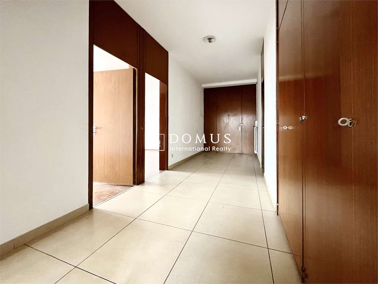 • Spacious apartment with a balcony overlooking a well-maintained garden area. The apartment features large windows, providing ample natural light and a view of the surrounding buildings and landscape.