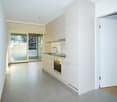 • open door to balcony, closed window, closed window with blinds, empty floor