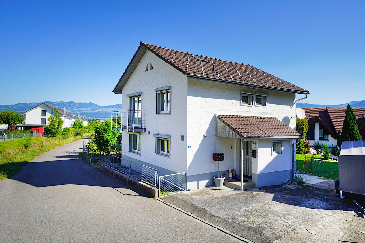 Schönes 1.5-Zimmer-Einfamilienhaus, auf sehr grossem 912 m² Grundstück, in den malerischen Voralpen im Erholungs- und Ausflugsgebiet Sattel-Hochstuckli, ein Paradies für Naturliebhaber und Ruhesuchenden. Die charmante Architektur, sonnige Ausrichtung und der durchdachte Grundriss des Hauses überzeugen. Hier wohnen Sie an ruhiger Lage mit traumhafter Aussicht nahe des Freizeit-, Wander- und Skiparadies mit Aussicht auf den Ägerisee und Alpen.- Charmantes 1.5-Zimmer-Chalet- Nettowohnfläche: 127.5 m²- Grundstückfläche: 912 m²- Aussicht auf den Ägerisee- Grosses Wohnzimmer mit Cheminée- Küche mit Zugang zum Gartensitzplatz und dem gedeckten Balkon- 3 Schlafzimmer - 2 Badezimmer mit Dusche, WC, Lavabo - Estrich-Lagerräume, DG - separate Waschküche, UG- grosser Gartensitzplatz, UG- 2 Carportplätze und 1 Aussenparkplatz- weitere Fotos auf https://www.remax.chAusbau:In diesem solide gebauten Haus erwarten Sie gemütliche Stunden, die Sie in einem sonnendurchflutenden Wohnzimmer oder auf dem ruhigen Sitzplatz im grünen Garten verbringen könnten.Vor der Haustür befinden sich zwei Carportplätze und ein weiterer Abstellplatz. Für Ihre Gäste ist dadurch genügend Platz zum Parkieren. Sie betreten das Haus im Erdgeschoss und gelangen in den rustikalen Korridor mit seiner praktischen Garderobe. Rechter Hand ist das Bad mit Dusche, WC und Lavabo angeordnet, und das Fenster bietet Ihnen viel Tageslicht. Weiter geradeaus befindet sich das 1. Schlafzimmer, welches auch als Büro verwendet werden kann. Ein Gang führt Sie weiter links in den Essbereich und zur geschlossenen Küche mit Zugang zum Gartensitzplatz. Vor der Küche ist der angrenzenden Essbereich mit dem grosszügigen Wohnzimmer. Das eingebaute Cheminée und die rustikale Holzvertäfelung verleihen dem Raum grossen Charme. Ebenfalls haben Sie vom Essbereich einen direkten Zugang zum Balkon, mit grandioser Aussicht auf den Ägerisee und Rossberg.Über die Treppe erreichen Sie das Untergeschoss. Rechter Hand ist die zweite Dusche, WC und Lavabo angeordnet, ebenfalls mit einem Fenster and viel Tageslicht. Durch die nächste Tür rechts betreten Sie das 2. Schlafzimmer, identisch gross ist, wie das Schlafzimmer im Erdgeschoss. Grosse Fenster erhellen den Raum und geben Ihnen ein heimeliges Flair. Weiter rechts betreten Sie das grosse 3. Schlafzimmer. Dieses ist gleich gross, wie die der Wohn- und Essbereich im Erdgeschoss und dadurch besteht die Möglichkeit, diesen Raum in zwei Zimmer zu unterteilen. Im Gang links sind die Waschküche mit Heizungsraum und ein grösserer Keller angeordnet. Am Ende des Ganges gelangen Sie zum grosszügigen, sonnigen Gartensitzplatz. Der gedeckte Sitzplatz lädt zum Erholen und Verweilen ein, umgeben von der Grünfläche des Hauses. Das Raumprogramm rundet ein grosser Estrich im Dachgeschoss ab, welcher viel Stauraum bietet. Umgebung, Anbindung:Das Objekt auf dem Mostelberg über Sattel ist in 8 - 10 Autofahrminuten vom Dorf Sattel erreichbar und in 9 Minuten zu Fuss von der Sattel-Hochstuckli-Drehgondelbahn Bergstation. Mostelberg bietet ein ruhiges und entschleunigendes Wohngefühl, inmitten der fantastischen Natur. Das Ski- und Wandergebiet Sattel-Hochstuckli befindet sich direkt vor der Haustüre und die nahegelegenen Seen laden zum Verweilen ein. Mit dem Auto sind Sie in 35 Minuten in der internationalen Stadt Zug, in 50 Minuten in Luzern und in in der Kulturstadt Zürich. Der Kantonshauptort Schwyz ist 20 Autominuten entfernt und bietet einiges an Kultur und Tradition. Der Kindergarten und die Primarschule befinden sich in Sattel, die Oberstufe in Rothenthurm, das Gymnasium in Schwyz und die internationalen Schulen in Zug. Allgemeine Daten:Gemeinde: 6117 Sattel - Kanton SchwyzOffizielle Sprache: DeutschBevölkerung: ca. 2'000 EinwohnerAngrenzende Gemeinden: Rothenthurm - Schwyz - Steinen - Steinerberg - OberägeriEs lohnt sich die Einzigartigkeit dieser Liegenschaft zu spüren und die