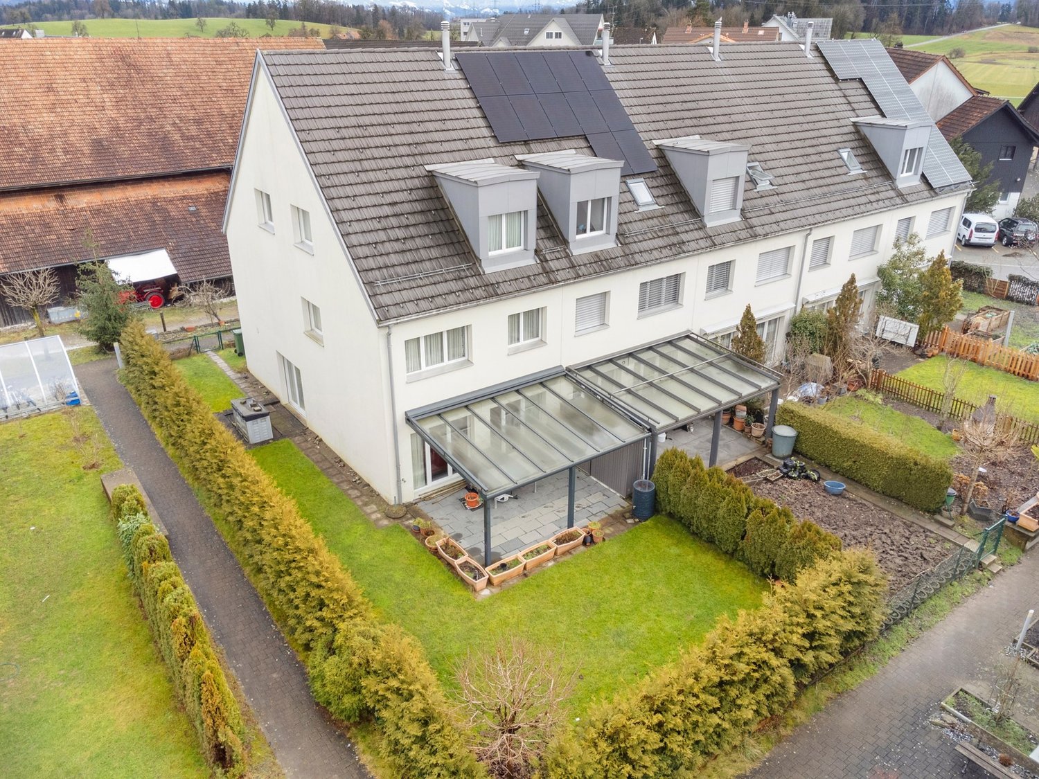 Beschreibung Herzlich willkommen zu einem Zuhause, das Träume Wirklichkeit werden lässt - ein Meisterstück in der malerischen Gemeinde Richterswil, das mit Charme, Eleganz und unvergleichlicher Lebensqualität begeistert. Dieses exklusive Einfamilienhaus vereint grosszügigen Raum, hochwertige Ausstattung und eine traumhafte Lage, die Sie sofort in ihren Bann ziehen wird. Lassen Sie sich von den Highlights und Besonderheiten dieses einzigartigen Anwesens verzaubern.Ein Zuhause voller Highlights - Ihr Rückzugsort in RichterswilSchon beim Betreten spüren Sie die besondere Atmosphäre: Hier vereinen sich lichtdurchflutete Räume, edle Materialien und eine durchdachte Raumaufteilung zu einem harmonischen Gesamtkunstwerk. Mit insgesamt 2.5 Zimmern auf 3 Etagen bietet dieses Haus Raum für Familie, Kreativität und Entspannung. Die Wohnfläche von 340 m² auf einem grosszügigen Grundstück von 881 m² schafft eine private Oase, die keine Wünsche offenlässt.Küche - der Herzschlag des HausesDer offen gestaltete Küchenbereich ist nicht nur ein Ort zum Kochen, sondern ein Mittelpunkt des Lebens. Hochwertige Miele-Geräte garantieren moderne Funktionalität auf höchstem Niveau, während die durchdachte Raumaufteilung mit viel Stauraum, eleganter Linienführung und Blickbezug zum Essbereich den Alltag zu einem kulinarischen Erlebnis macht. Ein perfekter Ort für gemeinsame Momente und inspirierende Gespräche.Wohnen & Essen - Raum für Begegnung und RückzugDer lichtdurchflutete Wohn- und Essbereich vereint moderne Klarheit mit wohnlicher Wärme. Ein stilvoller Kamin lädt an kühlen Tagen zum Entspannen ein - mit einem Glas Wein, einem guten Buch oder der Familie ums Feuer versammelt. Die Raumhöhe und der harmonische Übergang zur Terrasse schaffen ein Gefühl von Weite, Offenheit und Freiheit. Hier trifft Ästhetik auf Funktion, Alltag auf Wohnkunst.Schlafzimmer - Rückzugsorte mit CharakterInsgesamt bieten mehrere Schlafzimmer, darunter ein Elternbereich mit eigenem Bad, sowie charmante Kinder- oder Gästezimmer, vielseitige Möglichkeiten für jede Lebensphase. Die ruhige Atmosphäre jedes Zimmers ist eine Einladung zum Durchatmen. Das durchdachte Raumkonzept garantiert Privatsphäre, während Materialien und Lichtführung für Geborgenheit sorgen.Nasszellen - funktional & mit Potenzial zur EleganzMit insgesamt fünf Nasszellen - darunter drei Duschen mit WC und zwei separaten WCs - ist Komfort in jedem Stockwerk gewährleistet. Die Ausstattung ist gepflegt und funktional - bereit, mit wenigen Eingriffen modernisiert und dem persönlichen Stil angepasst zu werden. Perfekt für grosse Familien, Gäste oder Home-Spa-Liebhaber.Drei Terrassen - drei Perspektiven aufs LebenOb Frühstück in der Morgensonne oder ein Glas Wein bei Sonnenuntergang - drei grosszügige Terrassen eröffnen neue Blickwinkel und Möglichkeiten. Hier wird der Aussenbereich zum erweiterten Wohnzimmer - luftig, ruhig, stilvoll. Ideal für lange Sommerabende, Gartenfeste oder einfach eine stille Pause.Gartenidylle - Pool, Grillplatz & KinderlachenDas Aussenparadies gehört zu den grössten Highlights dieses Hauses: Ein gepflegter Garten mit eingebautem Swimmingpool, separater Grillecke, Spielbereich für Kinder und viel Grünfläche schafft Lebensfreude pur. Der Blick in die Weite, die ruhige Umgebung und der liebevoll gepflegte Aussenraum laden ein, die Natur in vollen Zügen zu geniessen - allein, mit Freunden oder der ganzen Familie.Weinkeller - ein Refugium für GeniesserIm Untergeschoss verbirgt sich ein Ort der besonderen Art: Ein stilvoller Weinkeller, der Temperament und Tradition vereint. Ideal für private Degustationen oder um den Lieblingswein standesgemäss zu lagern - hier entstehen Geschichten, hier werden Erinnerungen konserviert.Sauna & Wellness - Entspannung beginnt ZuhauseEin weiterer Höhepunkt des Hauses: Die private Sauna im Untergeschoss. Sie verwandelt kalte Winterabende in wohlige Entspannungsmomente. Ob nach dem Sport, einem anstrengenden Tag oder einfach nur zum Seele-Baumelnlassen - hier beginnt Erholung, ohne das Haus zu verlassen.Büro - Konzentration trifft StilEin stilvolles, ruhig gelegenes Büro bietet Raum für Inspiration und Effizienz. Ideal für Selbständige, Homeoffice-Nutzer oder kreative Geister. Lichtdurchflutet und dennoch geschützt, schafft es die perfekte Balance zwischen Fokus und Wohlbefinden.Spielraum / Man Cave - Rückzugsort mit CharakterEin Raum für die Hobbys, für Spieleabende, das Heimkino oder einfach nur als Man Cave gedacht - dieser Bereich bringt individuelle Freiheit ins Wohnen. Rückzugsort, Kreativzone, Werkstatt der eigenen Ideen - hier wird Persönlichkeit gelebt.Technik-, Wasch- und Elektroraum - zuverlässig & durchdacht Die Technikräume im Untergeschoss beherbergen u. a. die effiziente Erdwärmepumpe sowie eine praktische Waschküche mit Waschmaschine und Tumbler. Die moderne Bodenheizung verteilt angenehme Wärme im ganzen Haus - energiesparend und komfortabel.Und das Beste? Das PotenzialDas Haus bietet dank nicht tragender Innenwände flexible Möglichkeiten für individuelle Anpassungen, Erweiterungen oder neue Raumideen. Ob Ankleide, weiteres Kinderzimmer, Hobbyraum oder Atelier - diese Immobilie wächst mit ihren Bewohnern.FazitDieses Einfamilienhaus ist weit mehr als ein Ort zum Leben - es ist ein Raum voller Möglichkeiten, ein Rückzugsort für die Seele, ein Treffpunkt für Familie und Freunde. Jedes Detail wurde mit Bedacht geplant, jeder Raum erzählt von Komfort, Qualität und Geborgenheit. Die Kombination aus grosszügiger Wohnfläche, vielseitigen Nutzungsmöglichkeiten, luxuriösen Annehmlichkeiten wie Pool, Sauna und Weinkeller sowie dem liebevoll gestalteten Garten machen dieses Zuhause zu einem Unikat.Ob für Familien mit hohen Ansprüchen, Paare mit Lebensstil oder Menschen mit Weitblick - dieses Haus erfüllt nicht nur Bedürfnisse, es berührt.Interessiert ?Dann melden Sie sich für eine unverbindliche Besichtigung an.Herr Sasc