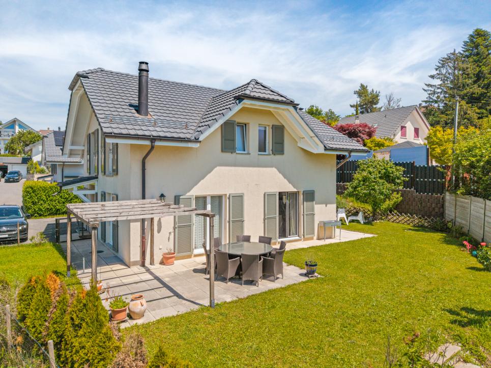 Villa familiale de charme avec grand jardin, étang et vue dégagée à MontpreveyresSituée dans un environnement verdoyant et paisible, cette belle villa individuelle de 1.5 pièces, offrant environ 200 m² habitables, a été construite en 1999 soigneusement entretenue au fil des années. Elle bénéficie d’un emplacement privilégié, à seulement 15 minutes de Lausanne et 5 minutes du Chalet-à-Gobet.Au rez-de-chaussée, vous découvrirez un séjour lumineux d’environ 35 m² agrémenté d’un poêle à pierre ollaire, une grande cuisine ouverte d’environ 21 m² avec accès direct au séjour par portes coulissantes, une chambre ou bureau, une salle de douche avec colonne de lavage ainsi qu’un hall doté de nombreux rangements intégrés.À l’étage, la suite parentale d’environ 23 m² séduit par sa vue imprenable et ses armoires intégrées. Deux grandes chambres (14 et 16 m²), dont l’une avec dressing de 4 m², ainsi qu’une salle de bains équipée d’une baignoire et d’un double lavabo complètent l’espace nuit. Un espace bureau en mezzanine vient parfaire cet étage.Le sous-sol, excavé aux deux tiers et partiellement chauffé, propose une pièce avec parquet idéale pour une salle de jeux ou une chambre d’appoint, un carnotzet, ainsi qu’un abri PC.À noter que la maison est équipée d’un poêle à pierre ollaire, d’une pompe à chaleur air/eau, de 33 panneaux photovoltaïques installés sur la maison, le garage et le couvert, ainsi que de fenêtres à double et triple vitrage.En bordure de zone agricole, cette parcelle d’angle d’environ 1’006 m² garantit une belle intimité sans vis-à-vis direct. Le jardin, soigneusement aménagé, offre deux terrasses, un magnifique étang avec cascades et poissons, une petite serre et un four à pizza — un cadre idyllique pour les familles et les amoureux de la nature.Pour plus d’informations ou organiser une visite, contactez Simon Spasov : simon.spasov@immosky.com | +41 76 209 80 64