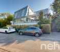 • Residential property with multiple buildings, solar panels on roofs, rooftop gardens, balcony, and parking.