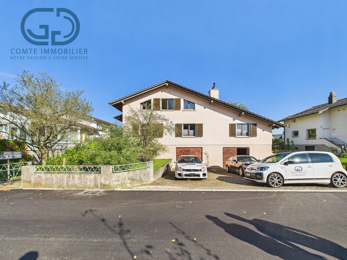 Située dans un quartier résidentiel calme et ensoleillé de Courroux, cette maison individuelle construite en 1960 et rénovée en 1990 puis en 2013 offre une surface habitable de 220 m² et une surface utile totale de 221 m², est bâtie sur une belle parcelle de 950 m². Elle se distingue par sa configuration composée de deux appartements indépendants, idéale pour un projet familial, un investisseur ou un propriétaire souhaitant combiner logement et rendement locatif.Distribution intérieureSous-solLe sous-sol comprend un couloir de distribution, une cave, un local technique, une chambre supplémentaire, un local citerne ainsi que deux garages. Ces espaces offrent de belles capacités de rangement et de stockage, ainsi qu'un accès pratique aux installations techniques et à l'extérieur.Rez-de-chausséeLe premier appartement, situé au rez-de-chaussée, propose une cuisine fonctionnelle, un séjour lumineux avec cheminée française, trois chambres spacieuses, une salle de bains et un couloir de distribution. Le salon mène à une terrasse extérieure orientée de manière à profiter d'un excellent ensoleillement, parfaite pour les repas d'été ou les moments de détente.1er étageLe second appartement se trouve au 1er étage et dispose d'un hall de distribution, d'une cuisine, d'un séjour accueillant, d'une chambre et d'une salle de bains. Cet étage offre une belle luminosité et une vue dégagée sur le quartier.ComblesLes combles, non habitables, offrent un volume supplémentaire utilisable pour le stockage ou pour un futur aménagement selon les besoins du propriétaire.Extérieurs et aménagementsLa propriété repose sur une parcelle de 950 m², soigneusement entretenue et offrant un bel espace extérieur. Un réduit d'environ 32 m³ complète les aménagements extérieurs, idéal pour le rangement du matériel de jardin. Les deux garages et plusieurs places de stationnement extérieures assurent une grande praticité pour les habitants et les visiteurs.Confort et potentielLe chauffage est assuré par un système au mazout, distribué par vannes thermostatiques, garantissant un confort homogène dans toute la maison. Le salon érigé lors de l'extension en 1990, possède une distribution de chauffage au sol.Les appartements nécessitent des travaux de rafraîchissement et de modernisation, permettant au futur acquéreur de les adapter à ses goûts et besoins.Situation et commoditésL'emplacement de la maison est un véritable atout : à quelques minutes à pied des magasins d'alimentation, boucheries, restaurants, cafés, tea room et banque, tout en bénéficiant d'un environnement paisible. L'arrêt de bus situé à seulement 3 minutes à pied assure une connexion facile vers Delémont et les localités environnantes.Un bien à fort potentielCette maison à Courroux combine emplacement privilégié, grand espace intérieur, deux logements indépendants et belle parcelle ensoleillée, offrant de nombreuses possibilités d'usage : habitation familiale, location, ou investissement.Contactez-nous dès aujourd'hui pour organiser une visite et découvrir le potentiel de cette propriété rare sur le marché de Courroux.