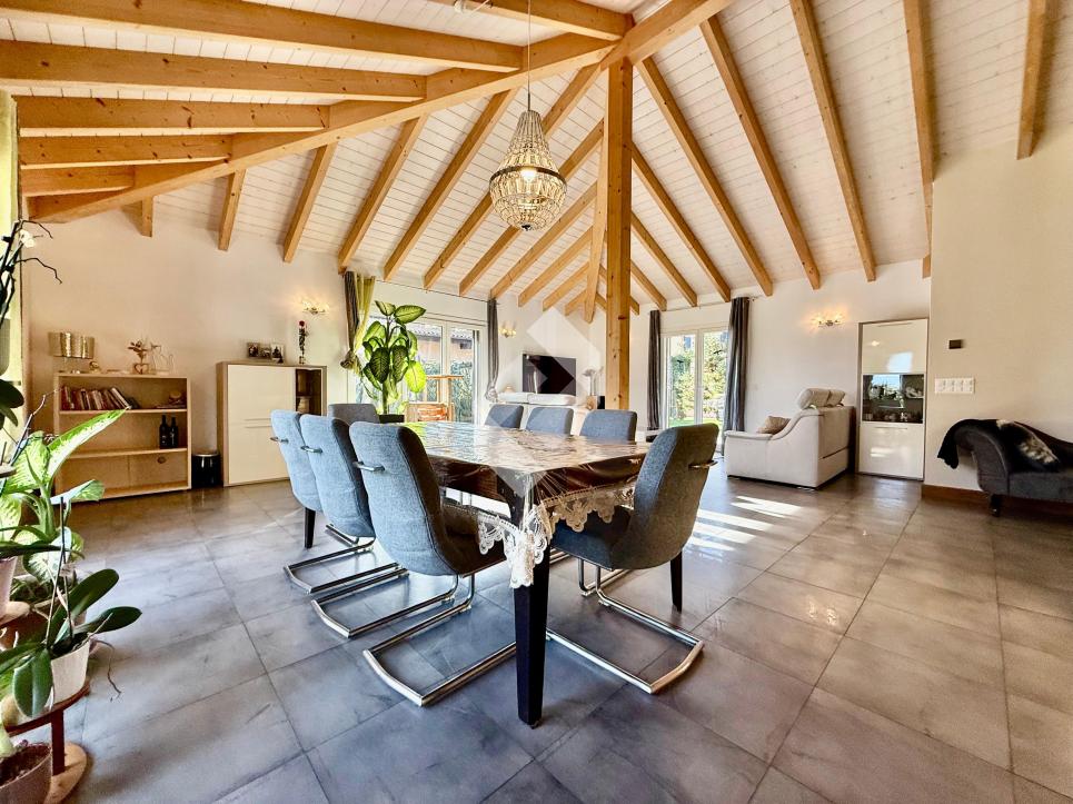 Résidence primaire.VOLLÈGES proche de VERBIER Magnifique villa contemporaine avec piscine et vue panoramiqueSituée au cœur du village de Vollèges, cette superbe villa construite en 2018 séduit par son architecture élégante, ses finitions haut de gamme et son cadre de vie privilégié. Implantée dans un quartier résidentiel calme, entourée de propriétés de standing, elle offre une vue imprenable sur la vallée et les montagnes.Édifiée sur une généreuse parcelle de 1’771 m², elle bénéficie d’un environnement intime, avec une grande piscine chauffée équipée d’un système de nage à contre-courant, une cuisine extérieure entièrement aménagée, ainsi que de vastes espaces de détente.D’une surface habitable de 430 m², la villa comprend cinq chambres, dont une suite parentale avec dressing, salle de bain, baignoire et douche, une superbe cuisine ouverte sur un séjour lumineux avec cheminée, une terrasse, une mezzanine (ou bureau), une salle de bains avec sauna / douche, une buanderie, ainsi que de nombreux rangements. Chaque pièce a été pensée pour maximiser la lumière naturelle et mettre en valeur le panorama environnant.Les extérieurs offrent un garage couvert pour deux véhicules ainsi que plusieurs places de stationnement, idéales pour recevoir en toute tranquillité famille et amis.Conçue dans une démarche écoresponsable, la villa est équipée de 70 m² de panneaux photovoltaïques orientés plein sud, d’une pompe à chaleur et de quatre puits géothermiques de 100 mètres de profondeur, garantissant une performance énergétique optimale.Volumes généreux : 2’236 m³ au total, dont 1’589.95 m³ pour l’habitation et 1.5.45 m³ pour les annexes (cuisine extérieure, piscine, garage). Un bien d’exception alliant luxe, confort et nature, idéal pour une famille en quête d’un cadre de vie unique.Une visite vous convaincra : n’hésitez pas à nous contacter !CHF 2'990'000.- réf 25300 Document non contractuel