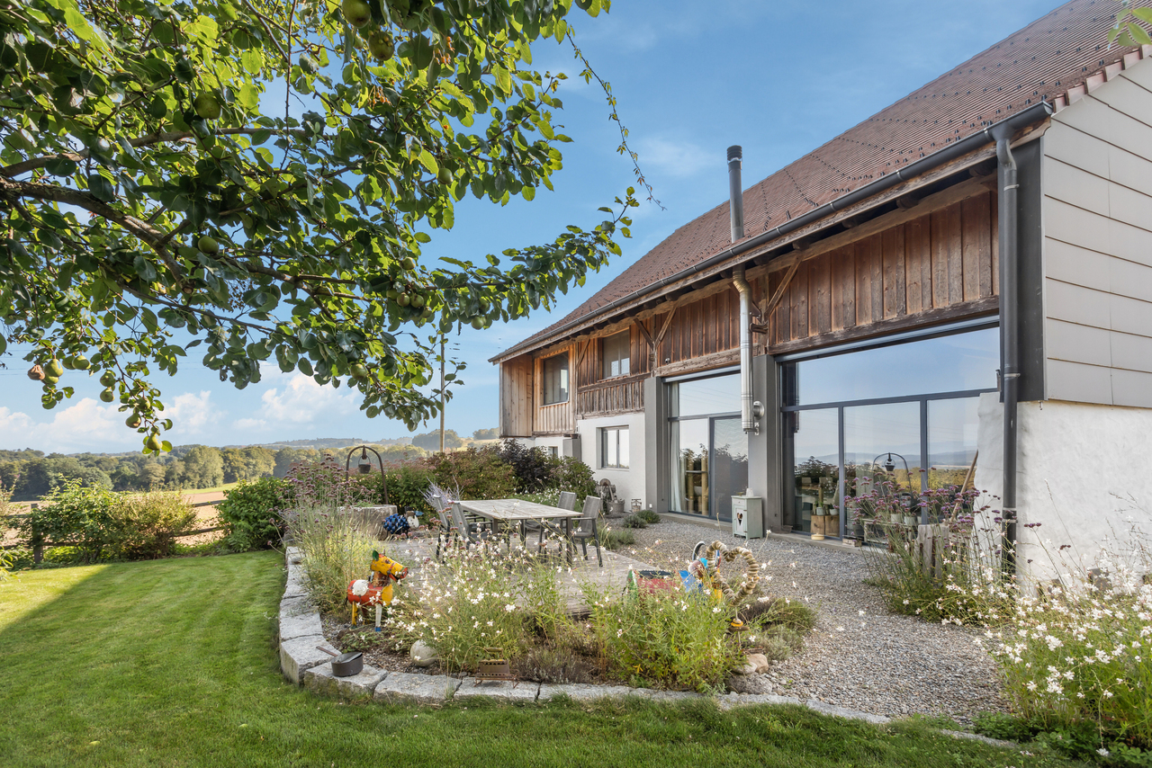 Érigée sur une parcelle de 3'550 m² et distribuée sur 2 niveaux, cette propriété de 2.5 pièces offre un cadre de vie indéniable dans un écrin de verdure, à l'abri des regards.Bâtie en 1750 et offrant une belle surface habitable d'environ 240 m², elle propose de grands volumes, de hauts plafonds et de spacieuses pièces.Les belles poutres apparentes, le béton brut, le béton ciré et le poêle suédois offrent une ambiance chaleureuse à l'imposante pièce à vivre accentuée par une bibliothèque murale.La belle mezzanine à l'étage dispose d'une vue plongeante sur cette dernière qui est baignée de lumière grâce à la vaste hauteur sous plafond. La partie nuit se compose de 2 chambres à coucher avec une douche privative au rez-de-chaussée et 3 chambres à coucher à l'étage.De plus, un deuxième salon, une salle de jeux et une mezzanine, actuellement aménagée en bureau et salle de sport, complètent l'étage.La vaste terrasse de 60 m² ainsi que le grand jardin ont été magnifiquement aménagés donnant un aspect très privatif et beaucoup de charme. La piste de pétanque et le jardin potager agrémentent ce lieu de détente.Une cave, une cave à vin, une buanderie, une écurie, un paddock ainsi qu'un rural complètent ce bien d'exception.La propriété dispose d'un garage non fermé pouvant stationner 1 véhicule, de 3 places de parc couvertes avec borne de recharge électrique ainsi que 5 places de parc extérieures. Petit village niché dans la Broye vaudoise, Dompierre vous permettra de jouir d'un environnement campagnard et paisible tout en étant à proximité de toutes les commodités. L'école primaire se situe à Granges-près-Marnand et l'école secondaire à Payerne, à 15 minutes en voiture. Pour les plus petits, une garderie se trouve à Lucens à seulement 5 minutes. La gare de Romont qui est très bien desservie n'est qu'à 7 minutes.Auf einem 3.550 m² großen Grundstück errichtet und auf 2 Ebenen verteilt, bietet dieses Anwesen mit 2.5 Zimmern einen unbestreitbaren Lebensrahmen in einer grünen Umgebung, geschützt vor Blicken.Das 1750 erbaute Haus mit einer schönen Wohnfläche von ca. 240 m² bietet große Volumen, hohe Decken und geräumige Zimmer.Schöne Holzbalken, roher Beton, gewachster Beton und ein Schwedenofen sorgen für eine warme Atmosphäre im imposanten Wohnraum, die durch ein Wandregal noch betont wird.Das schöne Zwischengeschoss im Obergeschoss verfügt über einen Tiefblick auf dieses, das dank der großen Deckenhöhe lichtdurchflutet ist. Der Schlafbereich besteht aus 2 Schlafzimmern mit eigener Dusche im Erdgeschoss und 3 Schlafzimmern im Obergeschoss.Darüber hinaus vervollständigen ein zweites Wohnzimmer, ein Spielzimmer und ein Mezzanin, das derzeit als Büro und Fitnessraum genutzt wird, das Obergeschoss.Die große Terrasse von 60 m² sowie der große Garten wurden wunderschön angelegt und verleihen dem Haus einen sehr privaten Aspekt und viel Charme. Die Boulebahn und der Gemüsegarten bereichern diesen Ort der Entspannung.Ein Keller, ein Weinkeller, eine Waschküche, ein Stall, eine Pferdekoppel sowie ein Landhaus vervollständigen diese außergewöhnliche Immobilie.Das Anwesen verfügt über eine nicht geschlossene Garage, die 1 Fahrzeug parken kann, 3 überdachte Parkplätze mit Elektro-Ladestation sowie 5 Außenparkplätze. Dompierre, ein kleines Dorf in der waadtländischen Broye, ermöglicht es Ihnen, eine ländliche und friedliche Umgebung zu genießen und gleichzeitig in der Nähe aller Annehmlichkeiten zu sein. Die Grundschule befindet sich in Granges-près-Marnand und die Sekundarschule in Payerne, 15 Minuten mit dem Auto entfernt. Für die Kleinsten gibt es eine Kindertagesstätte in Lucens, die nur 5 Minuten entfernt ist. Der Bahnhof von Romont, der sehr gut angebunden ist, ist nur 7 Minuten...