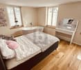 Entdecken Sie dieses wunderschöne, möblierte 9.5-Zimmer-Haus im Grünen mit privatem Garten und Fernsicht zur Zwischenmiete.Das Haus wurde 2021 totalsaniert und präsentiert sich modern, offen und lichtdurchflutet. Die leicht abgesetzte Lage von der Strasse bietet eine angenehme Privatsphäre und höchsten Wohnkomfort. Die ca. 290 m² Wohnfläche zeichnen sich aus durch • Grosszügiges, lichtdurchflutetes Wohnzimmer mit separatem Essbereich und offener Küche: Mit grossem Sofa, gemütlichem Speicherofen und grossen Fenstern, schöner Fernsicht und direktem Zugang zu Terrasse und Gartensitzplatz (über Aussentreppe) • Moderne Küche: Glaskeramik, Steinarbeitsplatten, Dampfbackofen sowie Backofen/Mikrowellenkombi, Geschirrspüler XL • Grosses Schlafzimmer: Doppelbett (180 x 210 cm), Kleiderschränke, und wunderschöne Aussicht auf die grünen Hügel • Gästezimmer: Doppelbett (140 x 290 cm), Blick ins Grüne und direkter Zugang zum Garten • Sportzimmer: Einzelbett (90 x 290 cm), kleine Infrarotsauna (für 1-2 Personen) und Platz für die Yogamatte • 2 stilvolle Badezimmer: Modern ausgestattet, Duschen mit Glaskabinen, Doppellavabos, hochwertige Armaturen, Badewanne im Bad OG • Separates Gäste-WC • Waschküche: Mit Waschmaschine und Trockner. • Grosszügige Terrasse: Mit Lounge, separatem Esstisch und traumhafter Fernsicht • Gepflegter Garten: • Südseitig: Schattiger Sitzplatz unter der Birke, Kaffeetisch und Elektrogrill (Weber) mit Blick ins Grüne (angrenzende Grünzone) • Westseitig: Grosse Spielwiese mit Trampolin (4,6m), Schaukeln und Sandkasten Alle Wohn- und Schlafräume sind in hellem, fein strukturiertem Eichenparkett gehalten.Lage und Umgebung: Das Haus befindet sich an ruhiger Lage in einer Sackgasse mit hervorragender Infrastruktur. Der Bahnhof Trogen ist nur 7 Gehminuten entfernt, die Haltestelle Gfeld sogar nur 4 Minuten. Ein Mini-Spar Supermarkt befindet sich ebenfalls in 7 Gehminuten Entfernung. Der historische Dorfkern mit seinem frisch renovierten Dorfplatz lädt mit seinen 2 Cafés, dem Restaurant, einer Bar und Brunnen zum Verweilen ein. Das renommierte Kinderdorf Pestalozzi mit seinen Spielplätzen liegt 5 Minuten entfernt hinter dem Haus. Mit der Bahn ist das Stadtzentrum von St. Gallen (Spisertor) in 20 Minuten, der Hauptbahnhof in 27 Minuten zu erreichen.Dieses einzigartige Haus vereint ländliche Ruhe mit moderner Ausstattung und bietet durch die sonnige Lage und die ruhige Umgebung höchste Lebensqualität. Perfekt für Familien oder alle, die das Wohnen im Grünen schätzen, ohne auf Komfort und eine gute Anbindung verzichten zu müssen.Die Zwischenmiete ist begrenzt auf den Zeitraum vom 01.01.2026 bis 31.05.2026 (Termin nach Absprache).