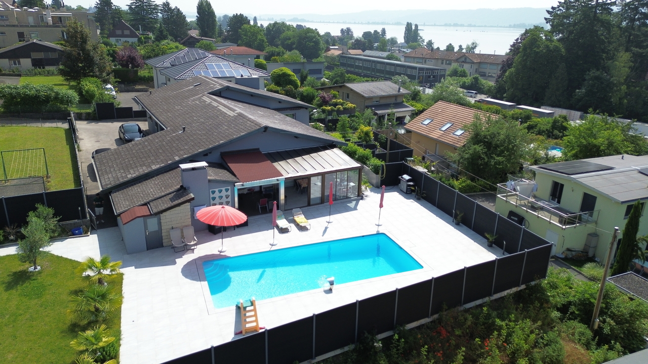 Bel appartement de 1.5 pièces avec jardin - Confort et espace Situé au rez-de-chaussée d'un immeuble de trois étages, cet appartement de 1.5 pièces offre une surface habitable nette de 120 m², agrémentée d'un jardin privatif de 47 m² et d'une terrasse couverte de 10 m². Son agencement optimal et ses beaux volumes en font un lieu de vie agréable et fonctionnel.Dès l'entrée, les espaces sont harmonieusement répartis : à droite, côté nord, se trouve l'espace nuit composé de trois confortables chambres à coucher. Un petit réduit, situé au fond du couloir, offre un rangement supplémentaire bien pratique.Au centre de l'appartement, deux salles d'eau - l'une avec baignoire, l'autre avec douche, toutes deux avec fenêtre - assurent confort et praticité.A gauche, côté sud, la pièce de vie séduit par son volume généreux : un vaste séjour-salle à manger-cuisine de 68 m², baigné de lumière et agrémenté d'une cheminée, apportant chaleur et convivialité.Ce bel appartement pourra nécessiter quelques travaux de rafraîchissement pour retrouver tout son cachet. Des espaces annexes complètent ce bien : une cave de 12 m² ainsi q'un local indépendant de 15 m², actuellement aménagé en atelier de bricolage, offrent des espaces supplémentaires appréciables. Deux places de parc, une en parking souterrain et une à l'extérieur, sont également incluses.Atout supplémentaire : des panneaux photovoltaïques sont en cours d'installation sur la PPE, améliorant l'efficacité énergétique de l'immeuble. Epilogue Cet appartement de 1.5 pièces au Landeron offre un bel espace de vie fonctionnel et pratique, dans un cadre calme et agréable. Avec ses 120 m² de surface habitable, son jardin privatif et sa terrasse, il propose de belles possibilités d'aménagement.L'agencement de l'appartement, avec un vaste séjour lumineux et une séparation bien pensée entre les espaces de vie et de nuit, en fait un bien attrayant. De plus, les espaces annexes tels que la cave, le local de rangement et les places de parc ajoutent une valeur pratique à l'ensemble.Bien que l'appartement soit dans un bâtiment plus ancien, il représente une belle opportunité pour ceux qui recherchent un cadre de vie paisible, à proximité de la nature et des commodités du Landeron.
