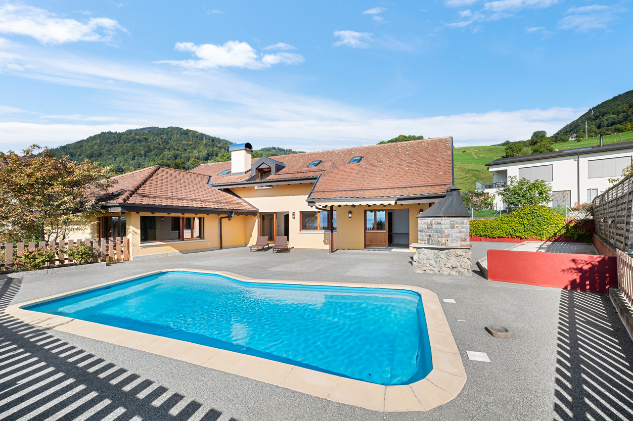 Cette magnifique villa individuelle est située à Brent, charmant village juste au-dessus de Montreux, au coeur de la Riviera vaudoise.Elle bénéficie d'un environnement calme et résidentiel, tout en étant à seulement quelques minutes des commodités et des attractions de la célèbre station.La propriété offre une vue magnifique sur le lac et les montagnes environnantes, avec un ensoleillement optimal du matin au soir, et des couchers de soleil féériques.Dotée de grands volumes, elle combine élégance et charme. Les espaces de vie sont vastes et lumineux, offrant une atmosphère chaleureuse et conviviale.Edifiée sur une parcelle de plus de 2'000 m2, elle dispose de plus de 550 m2 de surface utile, dont près de 280 m2 habitables et 170 m2 de sous-sols, entièrement aménagés et à usages multiples tels que salle de jeux, cinéma, fitness, sauna avec douche, etc. Ce niveau comprend également une cave à vin, un carnotzet avec cuisinette et WC séparé.Une terrasse partiellement couverte, avec barbecue permet de profiter d'un cadre enchanteur, face au lac, idéale pour les journées ensoleillées, les soirées en famille ou entre amis. Elle prolonge l'espace de vie vers l'extérieur, avec une superbe piscine et une piste de pétanque.Un garage pour deux voitures est également à disposition.Ne manquez pas cette opportunité rare de devenir propriétaire d'un bien d'exception dans un cadre idyllique.Diese wunderschöne freistehende Villa befindet sich in Brent, einem charmanten Dorf direkt oberhalb von Montreux, im Herzen der Waadtländer Riviera.Sie profitiert von einer ruhigen Wohnumgebung, während sie nur wenige Minuten von den Annehmlichkeiten und Attraktionen des berühmten Ortes entfernt ist.Das Anwesen bietet einen herrlichen Blick auf den See und die umliegenden Berge, mit optimaler Sonneneinstrahlung von morgens bis abends und märchenhaften Sonnenuntergängen.Ausgestattet mit großzügigen Räumen, vereint es Eleganz und Charme. Die Wohnräume sind groß und hell und bieten eine warme und freundliche Atmosphäre.Auf einem Grundstück von mehr als 2.000 m2 errichtet, verfügt es über mehr als 550 m2 Nutzfläche, davon fast 280 m2 Wohnfläche und 170 m2 Untergeschoss, das vollständig ausgebaut ist und vielseitig genutzt werden kann, wie Spielzimmer, Kino, Fitness, Sauna mit Dusche, etc. Diese Ebene umfasst auch einen Weinkeller, ein Carnotzet mit Küchenzeile und separatem WC.Eine teilweise überdachte Terrasse mit Grill ermöglicht es, eine zauberhafte Umgebung mit Blick auf den See zu genießen, ideal für sonnige Tage, Abende mit der Familie oder mit Freunden. Sie verlängert den Wohnbereich nach außen, mit einem herrlichen Swimmingpool und einer Petanque-Bahn.Eine Garage für zwei Autos steht ebenfalls zur Verfügung.Verpassen Sie nicht diese seltene Gelegenheit, Eigentümer einer außergewöhnlichen Immobilie in einer idyllischen Umgebung zu werdenThis magnificent detached villa is located in Brent, a charming village just above Montreux, in the heart of the Vaud Riviera.It enjoys a quiet, residential setting, yet is only minutes from the amenities and attractions of the famous resort.The property offers magnificent views of the lake and surrounding mountains, with optimal sunshine from morning to night, and enchanting sunsets.Its spaciousness combines elegance and charm. The living spaces are spacious and bright, offering a warm and friendly atmosphere.Built on a plot of more than 2,000 m2, it boasts more than 550 m2 of floor space, including almost 280 m2 of living space and 170 m2 of basement space, fully equipped for multiple uses such as a games room, cinema, fitness room, sauna with shower, etc. This level also includes a wine cellar, a carnotzet with kitchenette and separate toilet.A partially covered terrace with barbecue provides an enchanting setting facing the lake, ideal for sunny days and evenings with family or friends. It extends the living space outwards, with a superb swimming pool and pétanque court....