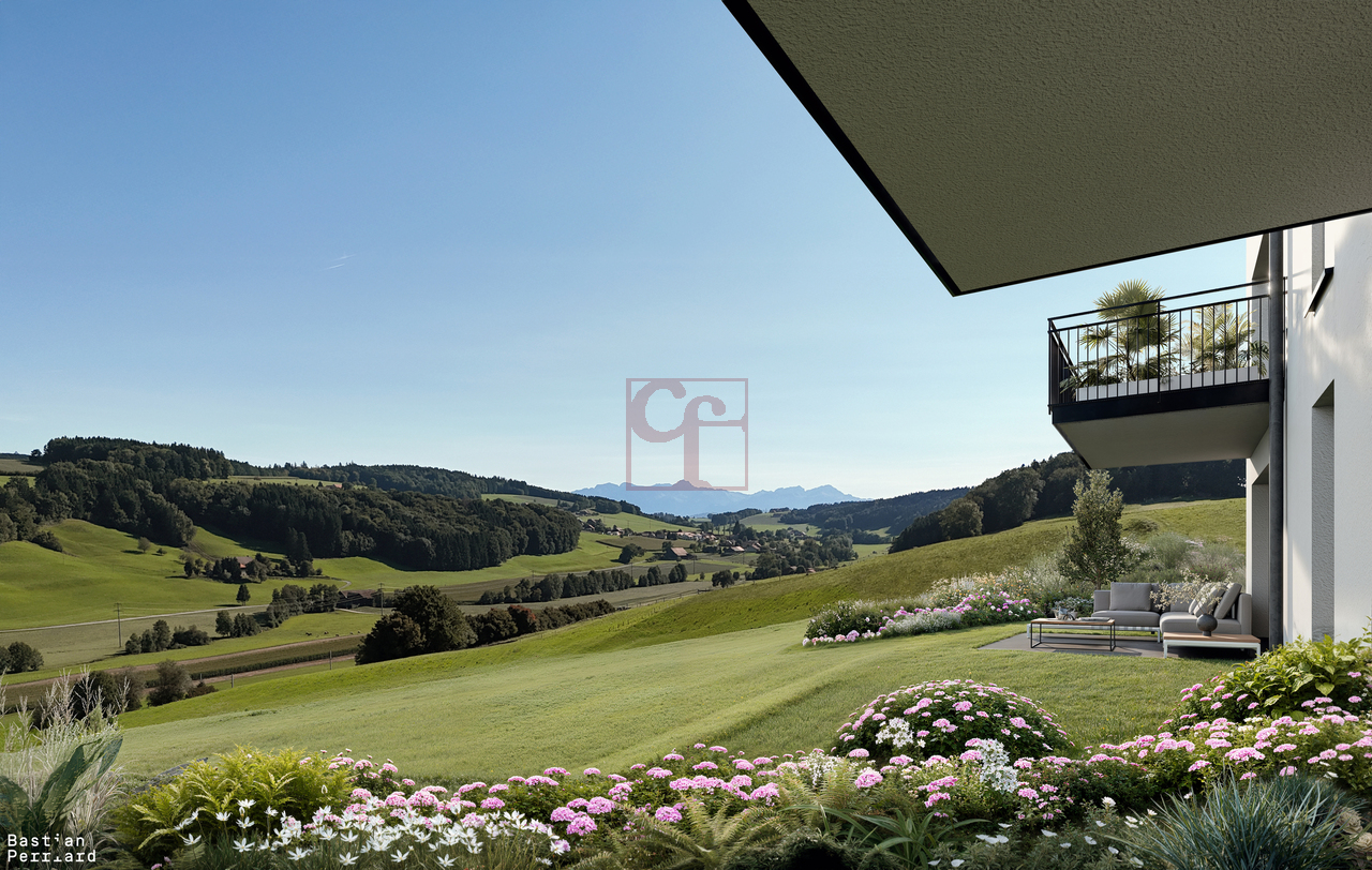 Superbe 5.5 pièces de standing - Ecoquartier " Les Echervettes" Situé au coeur d'un nouvel écoquartier moderne et innovant, cet appartement de 5.5 pièces de 140 m² allie confort, durabilité et élégance. Construit selon les standards les plus exigeants en matière d'efficacité énergétique et d'écoconstruction, il offre un cadre de vie exceptionnel à seulement 5 minutes à pied de la gare de Romont, à égale distance entre Fribourg, Payerne et Bulle.Un cadre de vie tout-en-un:L'écoquartier regroupe tous les services essentiels à proximité immédiate : du commerce alimentaire au dentiste, du coiffeur à la crèche, du spa-fitness à la pharmacie, sans oublier un restaurant, un hôtel pour accueillir vos proches et une polyclinique offrant diverses prestations médicales.Un appartement pensé pour le confort:Ce bien d'exception séduit par son architecture contemporaine, sa hauteur sous plafond généreuse et sa luminosité optimale grâce aux larges baies vitrées.La spacieuse cuisine équipée de nombreux rangements et d'un grand îlot central sera le coeur de vos moments conviviaux.La terrasse de 76 m², orientée sud-ouest, sans vis-à-vis et avec vue sur la campagne, invite à la détente et aux soirées d'été.Des prestations haut de gamme: • Finitions de standing • Domotique intégrée • Compteurs individuels pour le chauffage et l'eau chaude • Chauffage géothermique et panneaux solaires • Façades ventilées et toitures végétalisées • Constructions massives aux normes parasismiques les plus strictes (VS) • Label énergétique CECB® A • Butte antibruit végétalisée Une cave privative et deux places de parc intérieures complètent ce bien d'exception. (CHF 70'000.- en sus)Last but not least, possibilité de reprise d'hypothèque à d'excellentes conditions (0.8%)!Cet appartement est une opportunité rare pour celles et ceux qui souhaitent vivre dans un environnement écologique, moderne et serein, tout en restant proches des commodités et des transports.