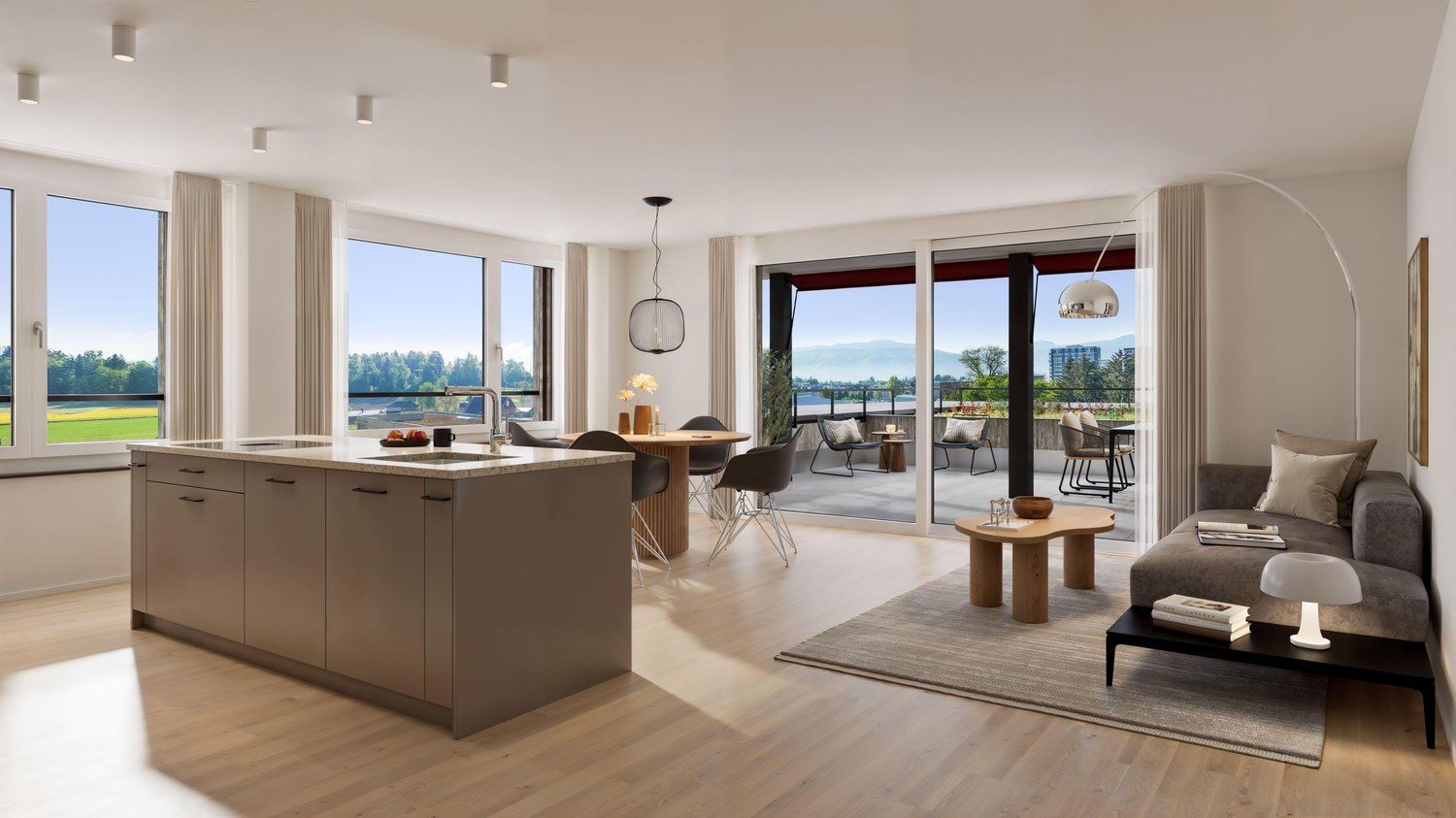 Wohnen auf höchstem Niveau – stilvoll, lichtdurchflutet und perfekt geschnittenDiese beeindruckende 1.5-Zimmerwohnung an der Bodenfeldstrasse 2b in Sins kombiniert elegantes Loft-Wohnen mit einem durchdachten, familientauglichen Grundriss. Grosse Fensterfronten, hochwertige Materialien und ein fliessender Übergang zwischen Kochen, Essen und Wohnen schaffen ein edles, Grossraum-Ambiente, das sofort begeistert.Der weitläufige Wohn- und Essbereich mit moderner, offen gestalteter Küche bildet das stilvolle Zentrum der Wohnung – ideal für gemütliche Abende, Gäste oder das tägliche Familienleben.Highlights der Wohnung • Grossflächiger Wohn- und Essbereich mit raumhohen Fenstern und viel natürlichem Licht • Offene, hochwertige Küche mit Kücheninsel und modernen Geräten • Edles Interior-Design: helle Materialien, hochwertige Böden, Designer-Leuchten • 2 grosszügige Schlafzimmer • Master-Bedroom mit Balkonzugang • Modernes Badezimmer mit Walk-in-Dusche und Badewanne • Zweiter, praktischer Nassraum • Ideales Home-Office-Setup dank intelligenter Raumaufteilung • 3 Balkone für unterschiedliche Sonnenzeiten • Zusätzliche Loggia – ideal als geschützter Outdoor-Bereich, perfekt für Lounge, Frühstück oder Home-Office im Freien • Sehr heller Grundriss dank optimaler Südausrichtung • Reduit und eingebaute Stauraumlösungen • Barrierefreier Zugang dank Lift direkt zur Wohnungsebene Lage – ruhig, sonnig und hervorragend angebundenDie Wohnung liegt in einem gepflegten, modernen Wohnquartier in Sins. Einkaufsmöglichkeiten, Schulen, ÖV und die Nähe zur Natur sind in wenigen Gehminuten erreichbar. • 5 Min. zu Fuss zu Einkauf & Restaurants • 8 Min. zu Fuss zum Bahnhof Sins • 20 Min. nach Zug, 30 Min. nach Luzern, 35 Min. nach Zürich • Nahe an Naherholungsgebieten mit Spazierwegen, Wiesen und Flusslandschaften Ideal für Paare, Familien oder Arbeiten im Home-OfficeMit ihrem offenen Loft-Charakter, gleichzeitig aber klaren Zimmerstrukturen, eignet sich diese Wohnung perfekt für Menschen, die Grosszügigkeit und Design schätzen, ohne auf Funktionalität zu verzichten.Interessiert?Gerne senden wir dir weitere Informationen oder vereinbaren einen Besichtigungstermin. Diese exklusive Wohnung ist ein seltenes Angebot in Sins – schnell sein lohnt sich.Bitte beachten Sie, dass die Visualisierungen noch aus der Bauphase sind.