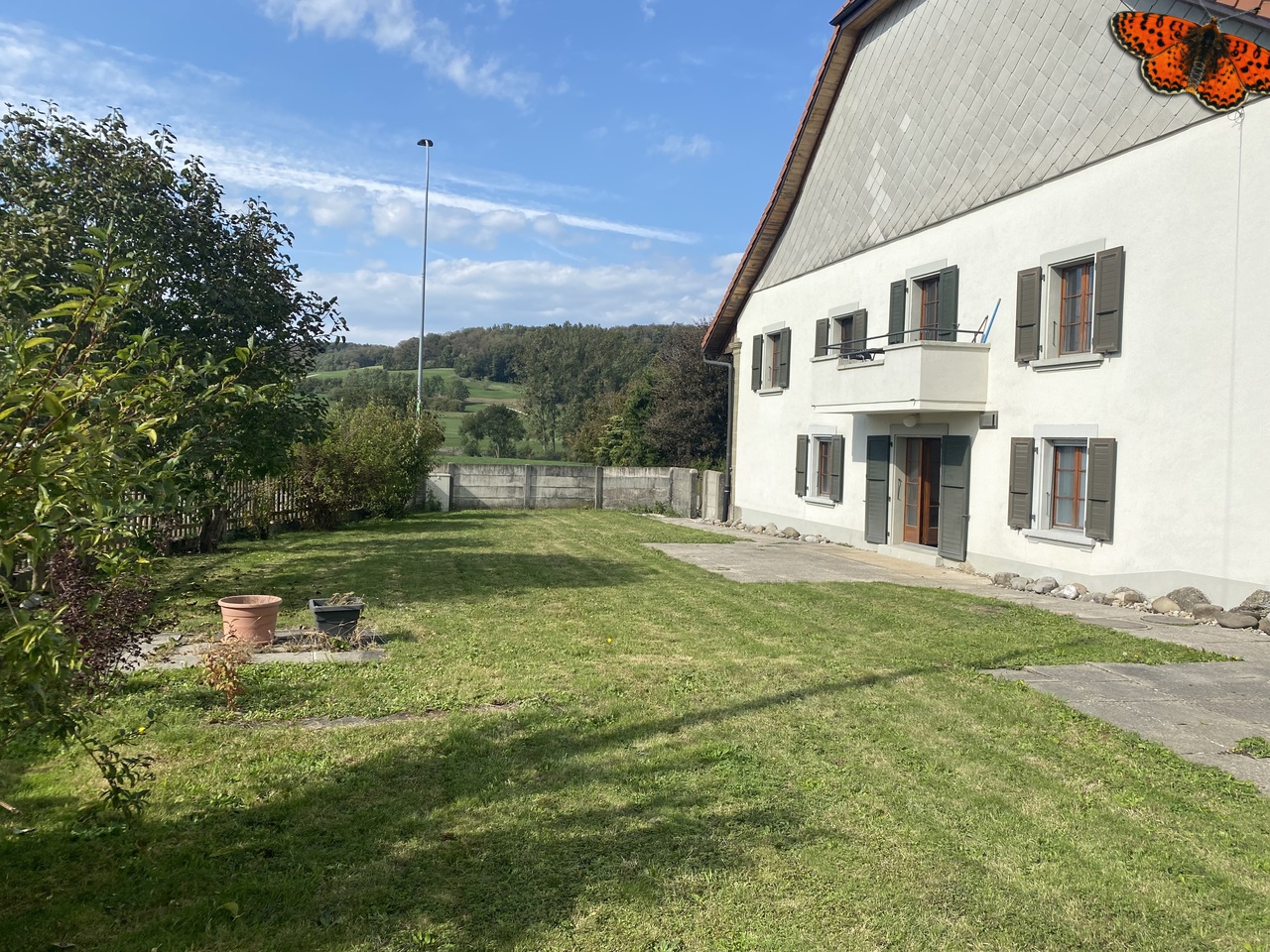 Du willst Raum, Ruhe und Licht – ohne Firlefanz? Dann passt diese Wohnung perfekt: Im Erdgeschoss eines kleinen 6-Familienhauses wartet ein heller, clever geschnittener 6.5-Zimmer-Traum mit grosszügiger Terrasse auf dich. Perfekt zum Relaxen, Grillieren oder Entspannen. • Grosse Terrasse • Zeitgemässe Küche mit Glaskeramik &amp; Geschirrspüler • Helles Bad mit Fenster &amp; Waschmaschinenanschluss • Einbauschrank im Flur • Parkett &amp; Keramikböden – pflegeleicht &amp; allergikerfreundlich • Keller, Veloraum, Waschküche, 2 Trocknungsräume • Gedeckter Parkplatz mit E-Anschluss: CHF 92.–/Monat ♻️ Nachhaltig modernisiert (2024/25): • Neue Fenster &amp; Fassadenisolation • Heizung mit Erdsonden • Photovoltaik auf dem Dach – Strom sparen inklusive 📍 Ruhige Lage direkt an der Landwirtschaftszone, trotzdem gut angebunden. Ideal für Paare, Singles oder alle, die einfach entspannt wohnen wollen. Beispielfotos – Wohnung kann leicht abweichen. Jetzt besichtigen &amp; verlieben.Tu veux de l’espace, de la lumière et du confort sans te prendre la tête ? Cet appartement est fait pour toi.Situé au rez-de-chaussée d’un immeuble de 6 logements, ce 6.5 pièces lumineux t’offre une grande terrasse pour profiter du plein air. • Terrasse spacieuse • Cuisine avec vitrocéramique et lave-vaisselle • Salle de bains avec fenêtre &amp; branchement lave-linge • Armoire murale dans l’entrée • Parquet &amp; carrelage – hygiénique et stylé • Cave, local à vélos, buanderie partagée, 2 séchoirs • Place de parc couverte avec borne électrique : CHF 92.–/mois ♻️ Rénové en 2024/25 : • Fenêtres &amp; isolation façade • Chauffage par sondes géothermiques • Panneaux solaires pour autoconsommation 📍 En bordure de zone agricole, au calme, mais bien connecté. Idéal pour une personne seule, un couple ou ceux qui aiment la tranquillité.