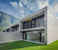 modern architectural building, concrete, large windows, glass panels, outdoor view