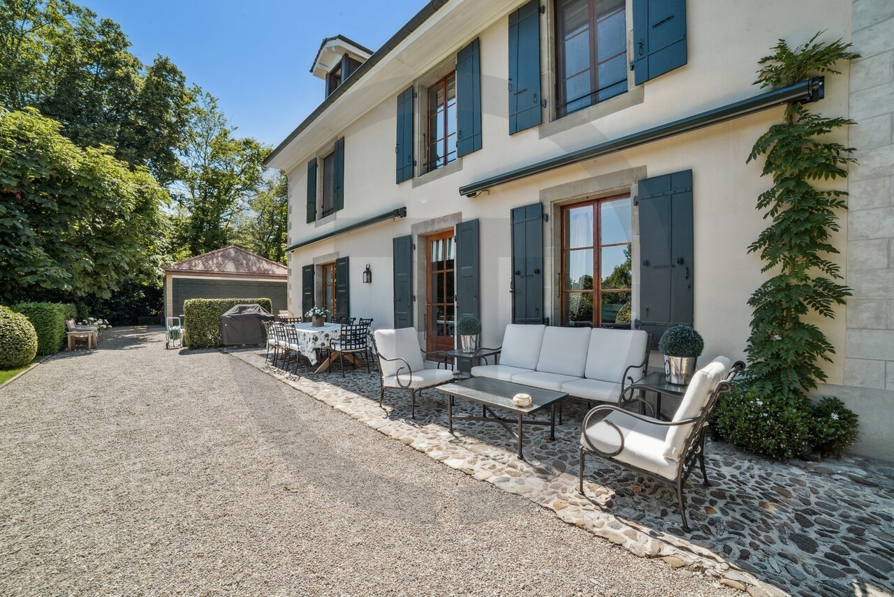 Ravissante Villa familiale individuelle de 9 pièces, d'environ 430 m2 habitables. Érigée sur une belle parcelle arborée, dans un cadre verdoyant à l'abrides nuisances et des regards, cette ravissante propriété offre d'agréables extérieurs aux aménagements soignés.Construite dans un style architectural classique, cette villa offre de beaux volumes dans un cadre idéal pour recevoir. La villa a été entièrement rénovée en 2016, dans un style raffiné maintenant le caractère et le charme de la bâtisse.L'élégant hall d'entrée avec vestiaire et toilettes visiteurs mène vers un grand salon très lumineux et à la grande terrasse dominant le jardin. Une cuisine équipée avec sa salle à manger complète l'étage. Le premier étage est dédié à l'espace nuit et dispose de deux grandes chambres en suite avec sa salle de bains/douche, ainsi que de deuxchambres à coucher partageant une salle de douche.Le sous-sol, entièrement excavé, dispose des habituelles pièces techniques et de rangement, mais également d'une grande salle de jeux avec lumière naturelle, d'une cave à vin et d'un atelier. En annexe attenante à la villa (par entrée indépendante), logement ou espace professionnel est composé d'un hall d'entrée avec toilettes visiteurs, d'une kitchenette équipée, d'un beau séjour avec accès terrasse, d'une chambre et d'une salle de douche. Le joli jardin est entretenu avec soin et bénéficie d'une orientation sud/est. Un garage et une belle cour pavée pouvant accueillir plusieurs voitures complètent cette superbe propriété.Loyer mensuel : CHF 13'500.00 (Charges Individuelles)Disponible immédiatement.Pour tout renseignement ou demande de visite, vous pouvez nous contacter par téléphone au 022 312 13 35.Après votre visite, en cas d'intérêt à louer l'objet, retrouvez l'annonce sur notre site web www.fm-management.ch et cliquez sur le lien "Inscription en ligne" pour soumettre votre dossier d'inscription directement en ligne; ou alors téléchargez le formulaire d'inscription intitulé « demande de location pour appartement » disponible sous l'onglet «formulaires» et, une fois complété, renvoyez-le avec ses annexes à notre adresse: location@fm-management.ch.