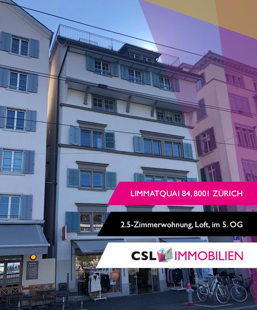 Diese einzigartige 4.5-Zimmer-Loftwohnung befindet sich im obersten Geschoss eines charmanten und renovierten Altbaus am Limmatquai 84 im Herzen von Zürich. Auf rund 185m2 Wohnfläche erwartet Sie ein offenes Raumkonzept mit viel Licht, stilvollen Dachschrägen und hochwertigem Ausbau.Ein besonderes Highlight ist die private Terrasse mit Blick über die Dächer der Stadt und zur Limmat.Die Lage ist unschlagbar: Direkt an der Limmat, wenige Schritte zur Altstadt, zum Bellevue und zu zahlreichen Cafés, Restaurants und kulturellen Angeboten. Die Tramhaltestelle Rudolf-Brun-Brücke befindet sich direkt vor dem Haus und bietet optimale Anbindung an den öffentlichen Verkehr.Ihre Vorteile auf einen Blick: • Einzige Wohnung im Gebäude - absolute Privatsphäre • Direkt am Limmatquai mit Blick auf die Limmat • Private Terrasse mit Stadtblick • Loft-Stil mit offenem Grundriss • Renovierter Altbau mit modernisierter Küche und Bad • Lift mit direktem Zugang zur Wohnung • Tramhaltestelle Rudolf-Brun-Brücke direkt vor dem Haus • Zentrale Lage in der Altstadt, nahe Bellevue und Zürich HB • Urbanes Wohnen mit historischem Flair Die Wohnung ist die einzige Wohneinheit im Gebäude. Die restlichen Flächen werden gewerblich genutzt.Ideal für Singles oder Paare, die das Besondere suchen und urbanes Wohnen mit Charakter schätzen.Interessiert? Vereinbaren Sie noch heute einen Besichtigungstermin und erleben Sie diese besondere Wohnung direkt vor Ort. Wir freuen uns auf Ihre Kontaktaufnahme.