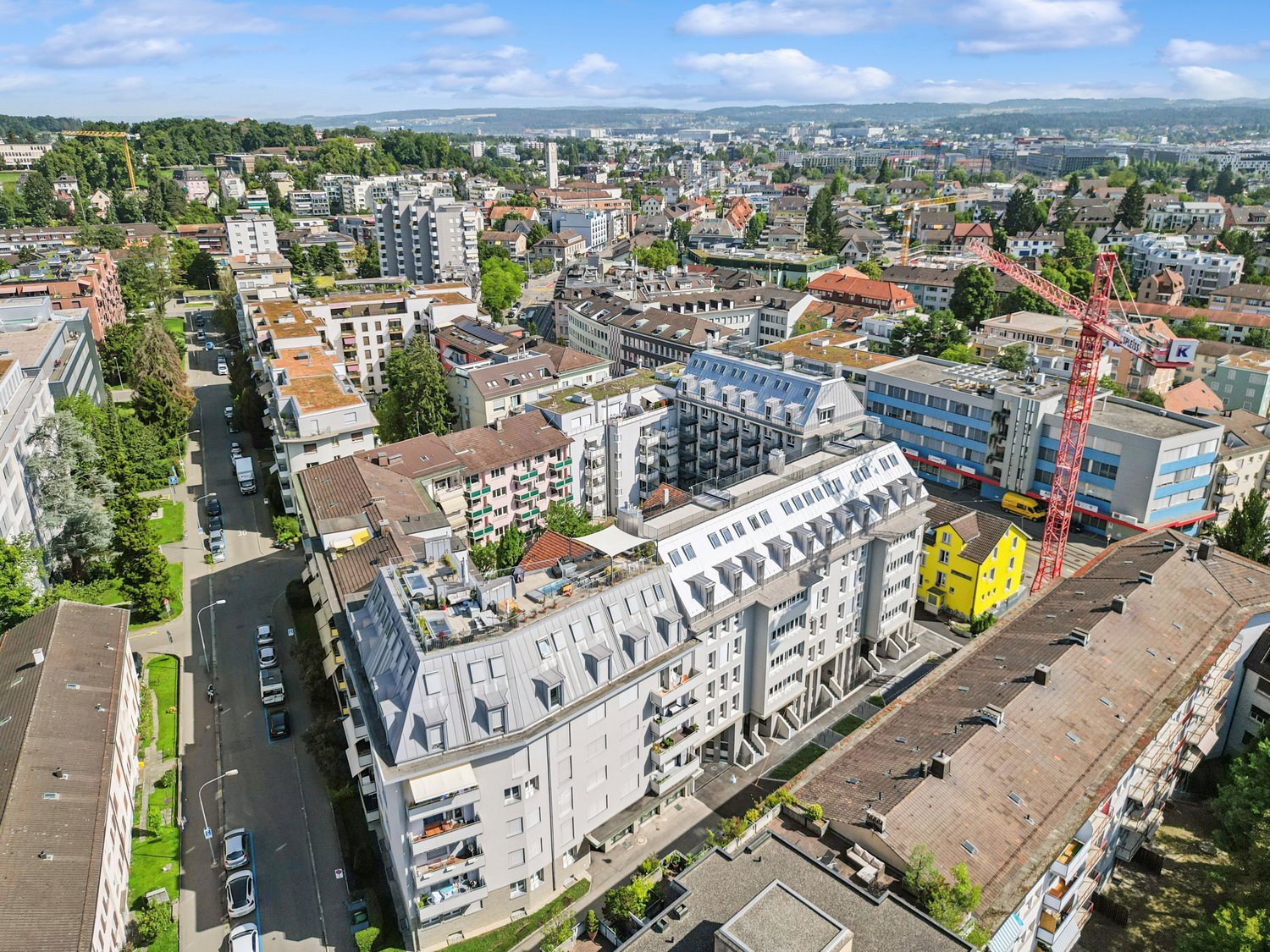 Im beliebten Kreis 11, ist mit «Living Eleven» ein modernes Neubauprojekt vollendet worden, das urbanes Flair mit höchster Wohnqualität verbindet. Bereits beim Eintritt in die verschiedenen Häuser, fällt die offene und helle Architektur auf, die durch die überhohen Räume, eine einladende und repräsentative Atmosphäre schafft.Die ab sofort bezugsbereiten Wohnungen, überzeugen mit einer durchdachten Ausstattung: elegante und pflegeleichte Bodenbeläge, stilvolle Schreinerküchen der Kurt Keller AG sowie einer eigenen Waschmaschine und Tumbler in jeder Einheit. Eine Video-Gegensprechanlage sorgt für zusätzliche Sicherheit. Ein Ausbaustandard, der Wohnkultur neu definiert.Diese grosszügige 6.5-Zimmer-Maisonettewohnung (ca. 75m² Wohnfläche) besticht durch einen durchdachten Grundriss und viel Tageslicht. Ein echtes Highlight ist sicherlich die grosszügige Dachterrasse. Hier geniessen Sie einen wunderbaren Blick über die Dächer Zürichs – vom Hönggerberg bis zum Uetliberg. Die Terrasse bietet Platz für gemütliche Loungemöbel sowie einen Esstisch. Ob sonnige Nachmittage mit der Familie, entspannte Grillabende mit Freunden oder romantische Stunden bei Sonnenuntergang, die Dachterrasse erweitert Ihren Wohnraum auf einzigartige Weise.Die Lage ist unschlagbar: Der Bahnhof Oerlikon ist 3-4 Gehminuten erreichbar und bietet optimale Verbindungen ins Stadtzentrum, zum See oder direkt zum Flughafen (10 Minuten). Auch Tram- und Busstationen befinden sich direkt vor der Haustüre. Einkaufsmöglichkeiten wie Coop und Aldi sowie zahlreiche Restaurants, Cafés und Bars runden die Infrastruktur bestens ab.Die 61 Mietwohnungen bieten eine vielfältige Auswahl – von praktischen 1.5- bis 6.5-Zimmer-Wohnungen über grosszügige 4.5-Zimmer-Wohnungen bis hin zu einer beeindruckenden 5.5-Zimmer-Wohnung.Alle wichtigen Informationen finden Sie unter: https://www.livingeleven.ch/Lassen Sie sich von diesem Wohntraum begeistern und vereinbaren Sie noch heute einen Besichtigungstermin. Wir freuen uns auf Ihre Anfrage!